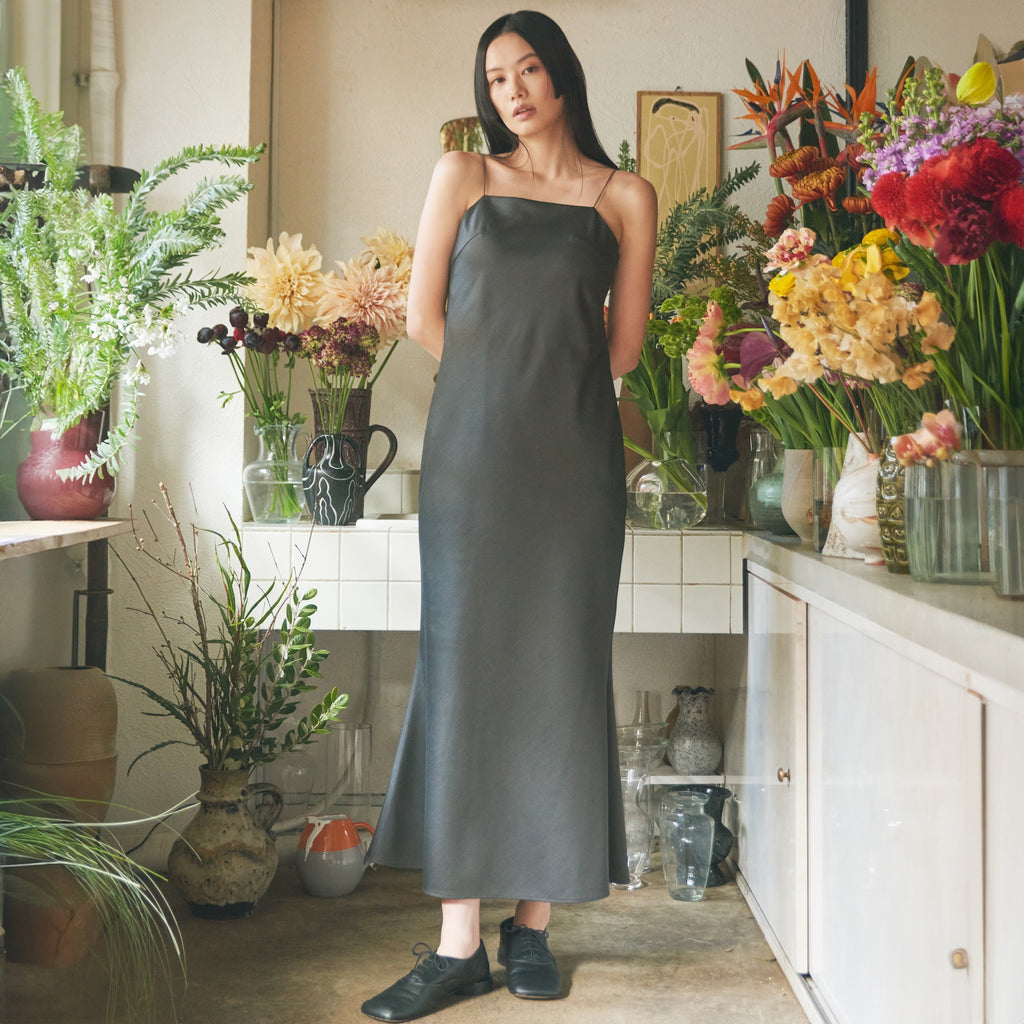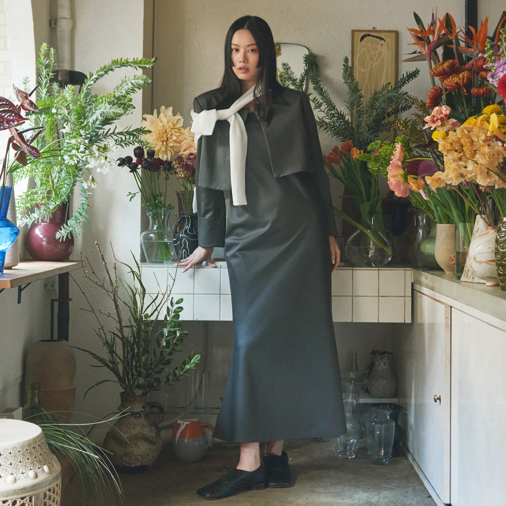 Introducing the spring occasion series! The ever-popular long dress with delicate spaghetti straps has been redesigned to create a more beautiful silhouette. "Heather gray" and "navy" are new colors, and the existing "beige" has also been renewed with a new color.