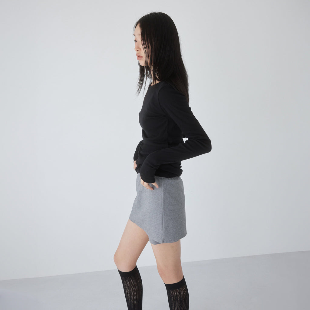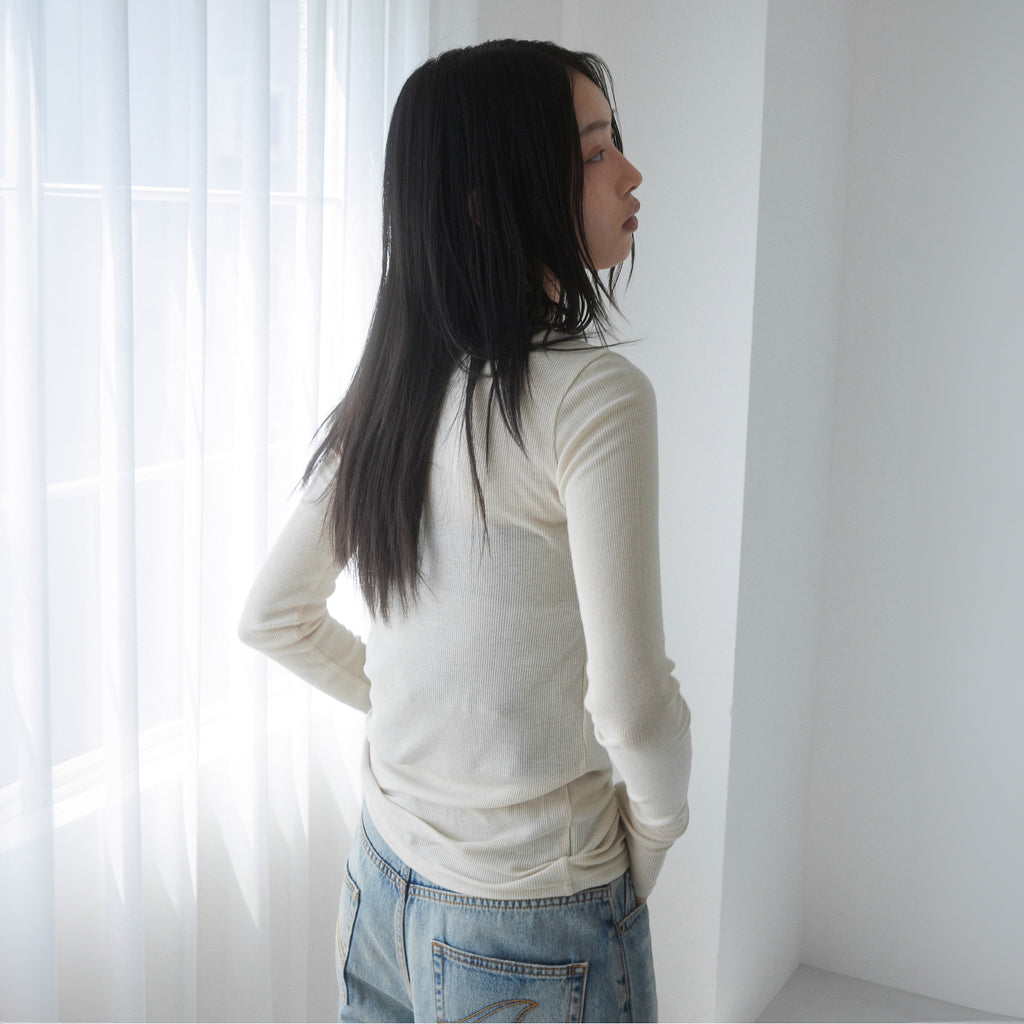 This fine-pitch ribbed fabric has an exquisite sense of transparency and is easy to use. The soft feel is a key point for comfort. Even in its softness, you can feel the refreshing dry touch of cotton.