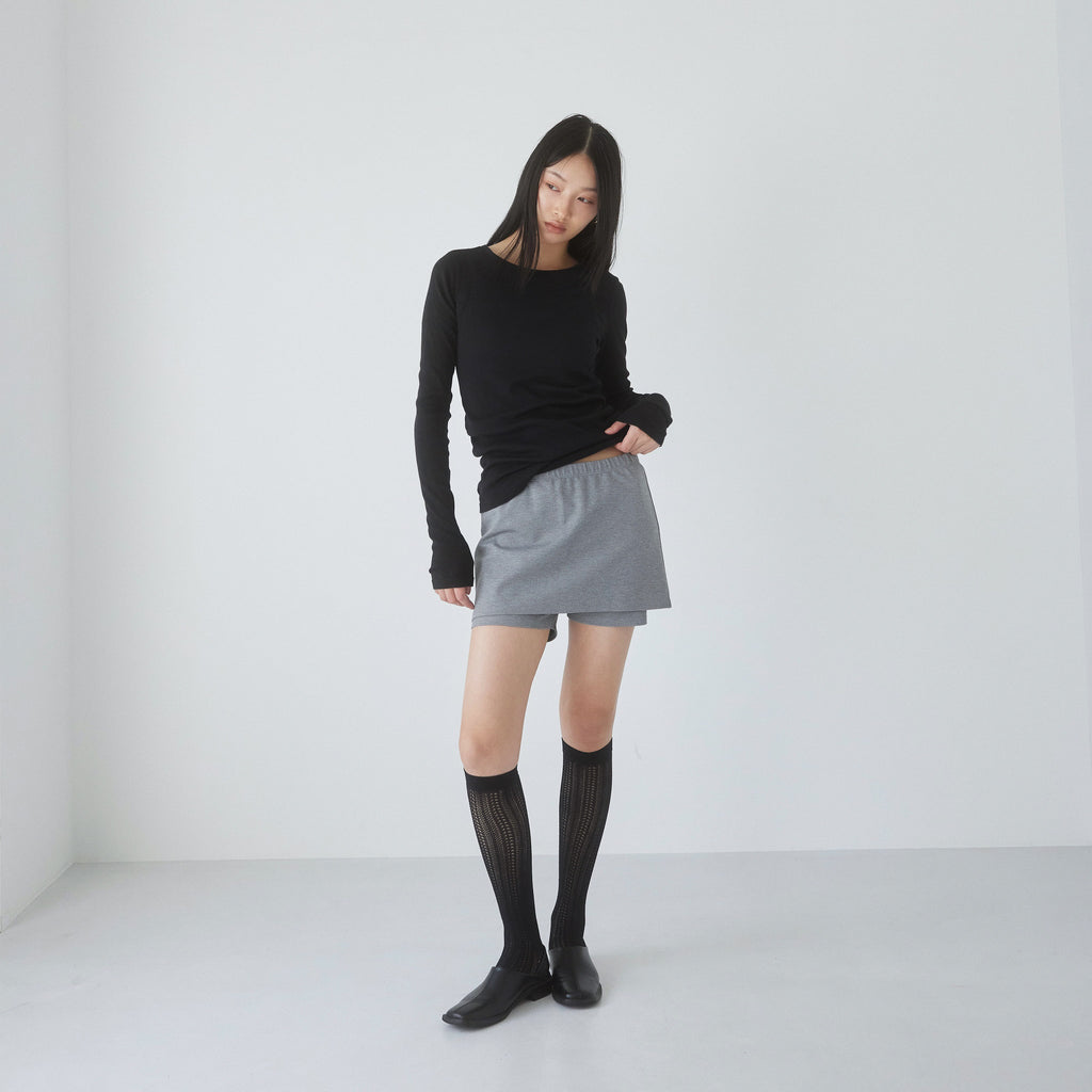 A tight silhouette that fits the body. The length is long and it is a great item that can be worn with a variety of outfits. It is thin so it is easy to tuck into your bottoms.