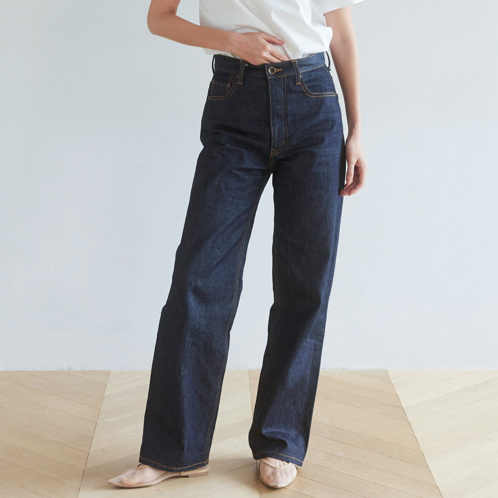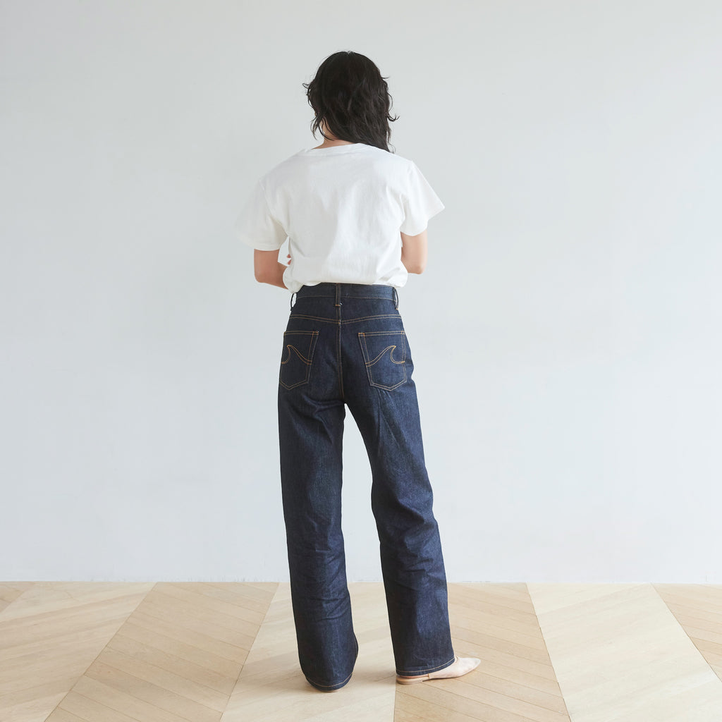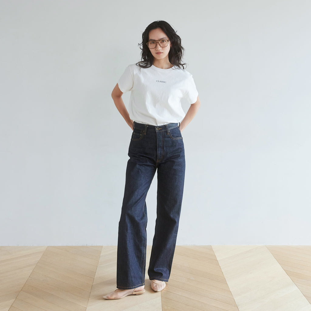 This thick denim with a straight cut that flatters the legs is back in stock. A new color, "Indigo," has also been released. It has the look of vintage 80s denim, but also has the clean look that is characteristic of SRL.