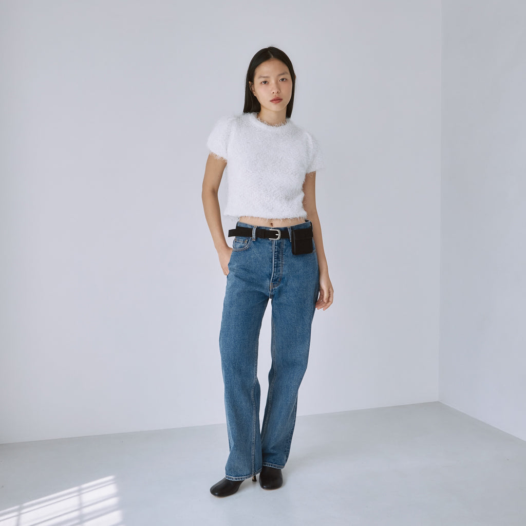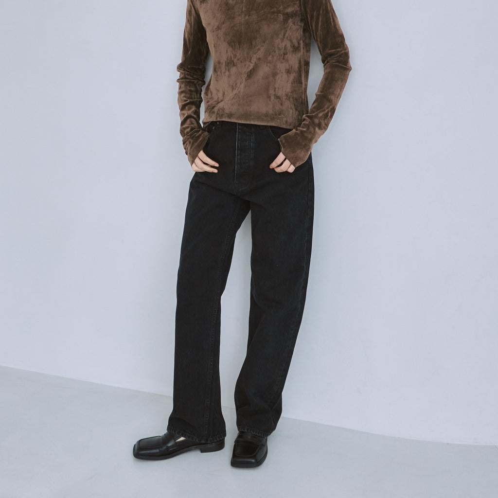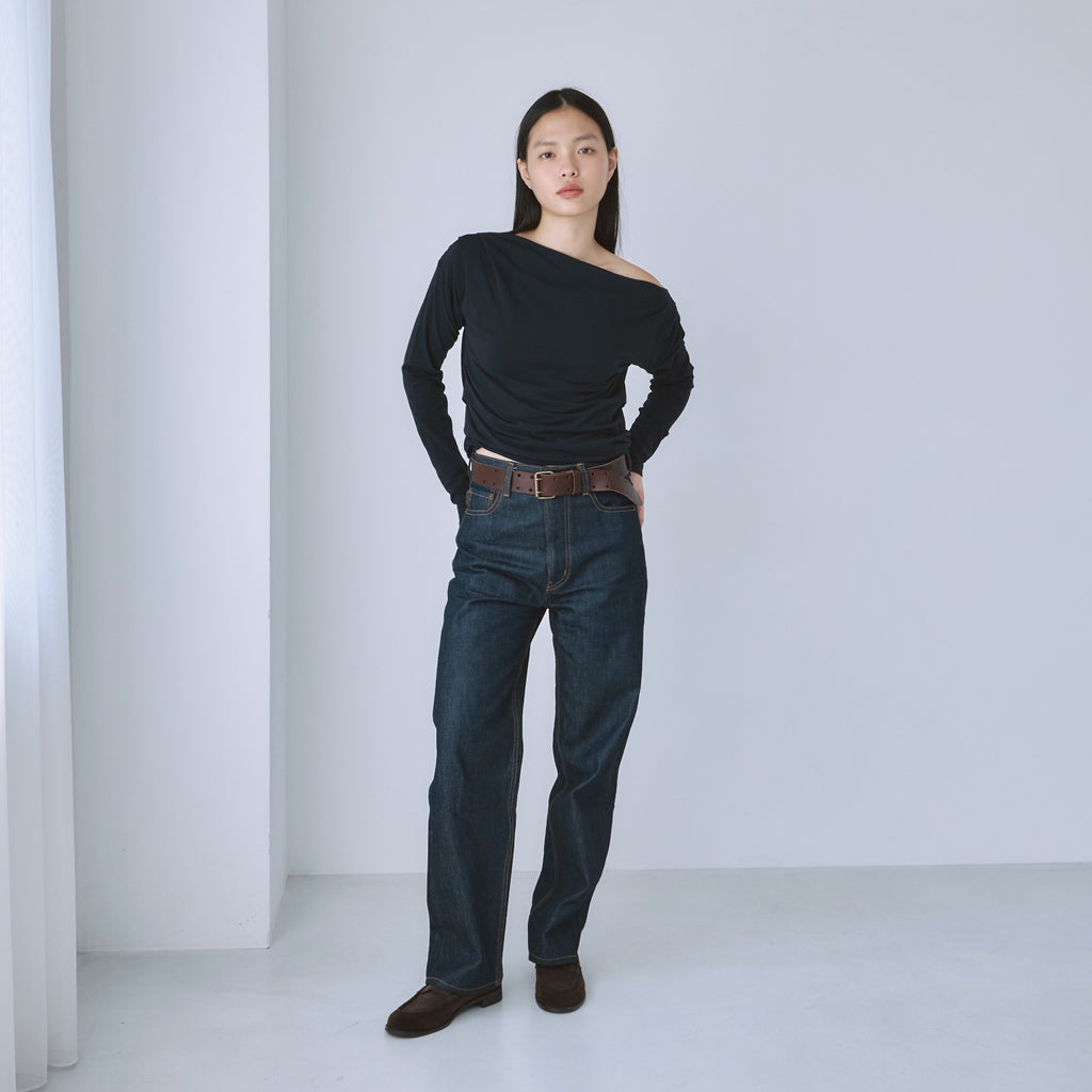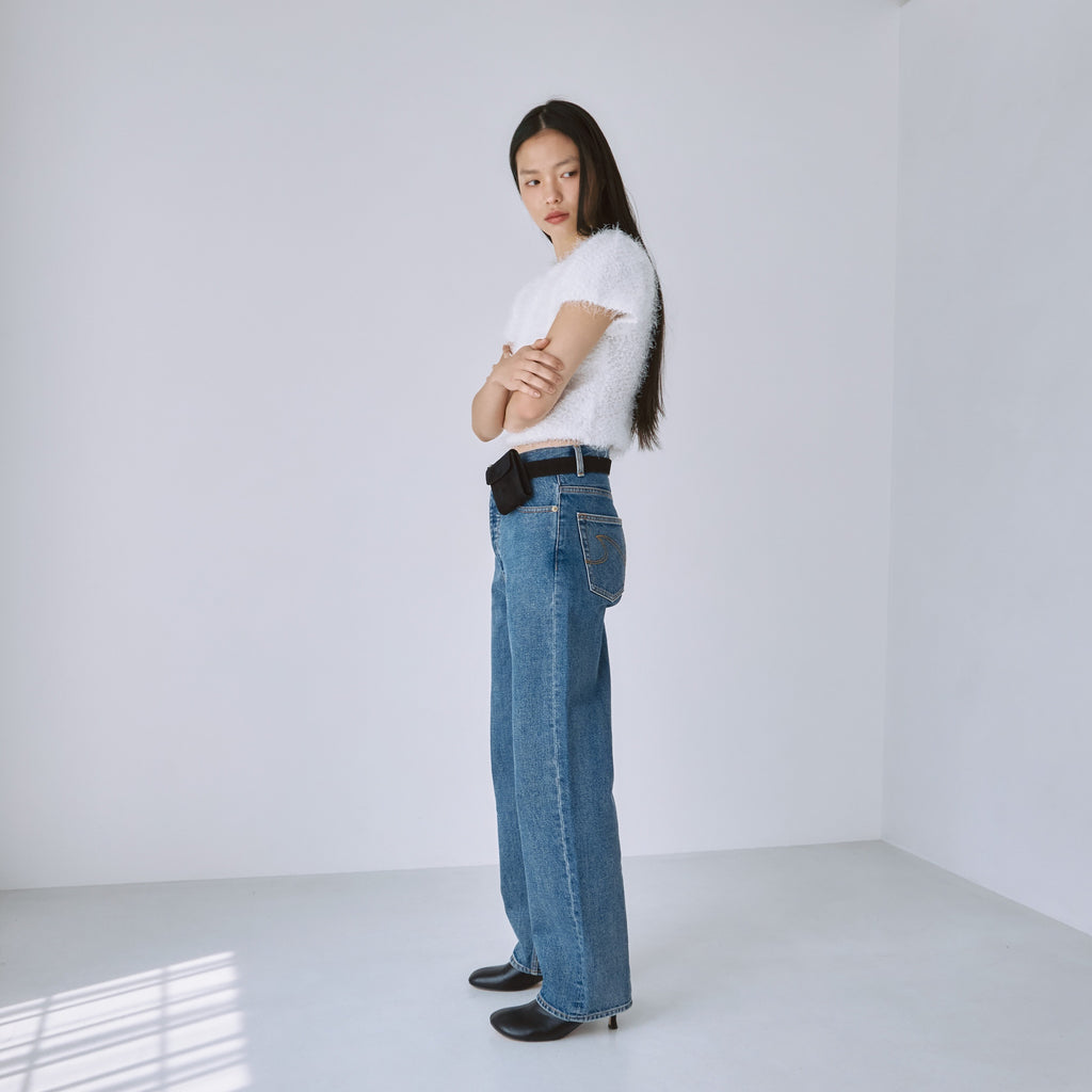 This thick denim with a straight cut that flatters the legs is back in stock. A new color, "Indigo," has also been released. It has the look of vintage 80s denim, but also has the clean look that is characteristic of SRL.