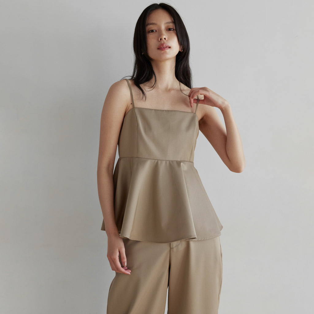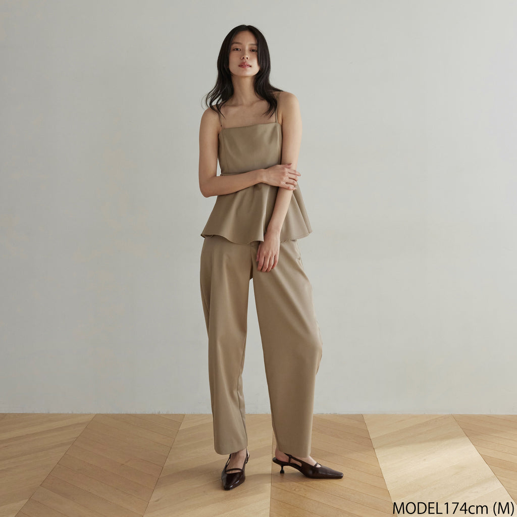 The top is fitted, with a flared silhouette that spreads softly from under the bust to the hem. The bust area is intentionally made flat without built-in elastic so that it can be worn simply and maturely.
