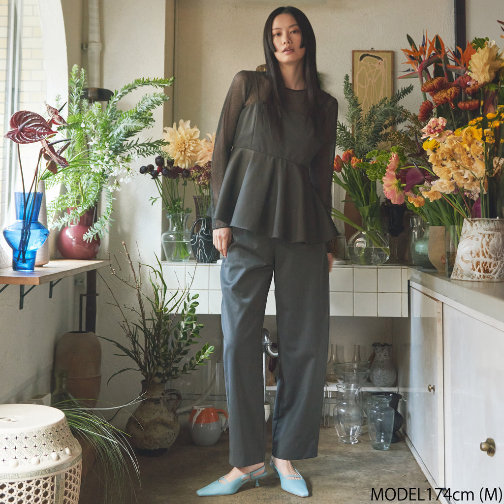 ◆Coordination We recommend pairing it with the Flowy Fabric Curve Slacks Pants. It also goes well with jackets such as the Wide Cuffs Short Jacket and the Wide Cuffs Jewelry Short Jacket.
