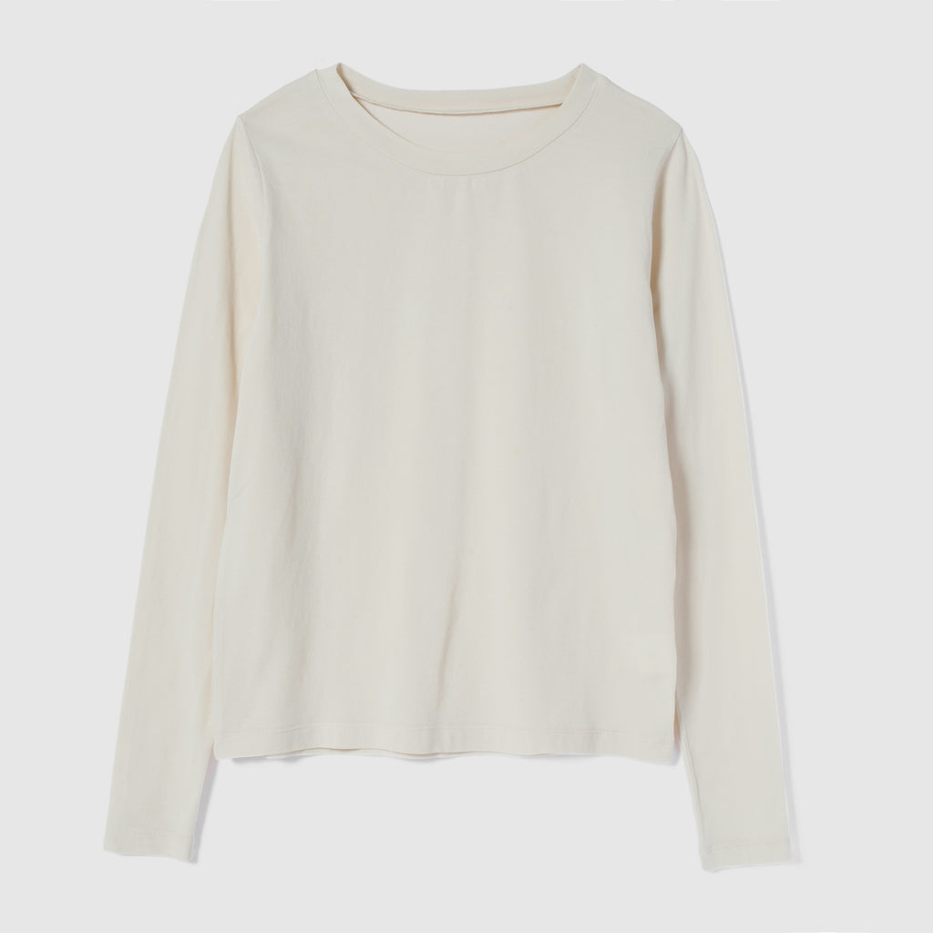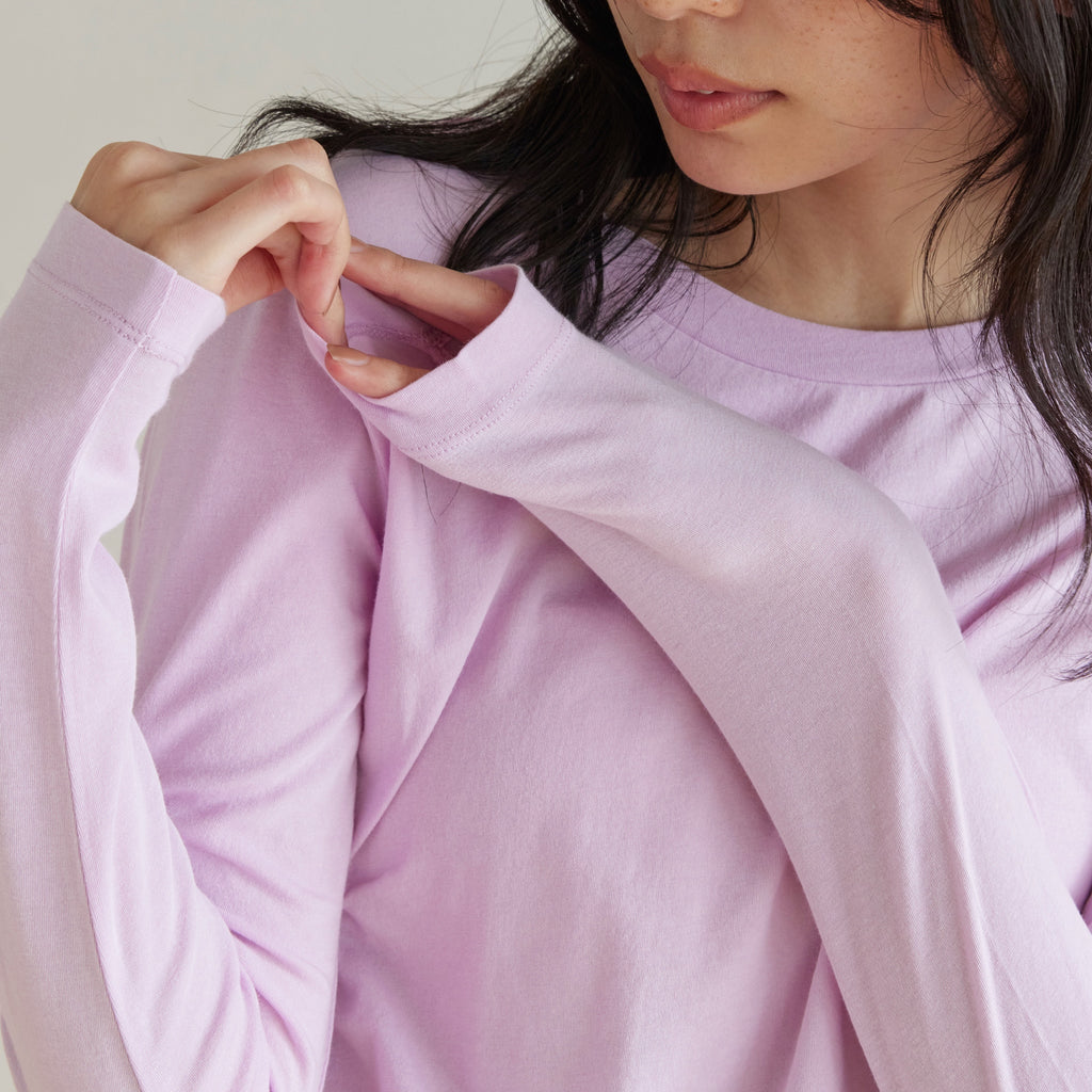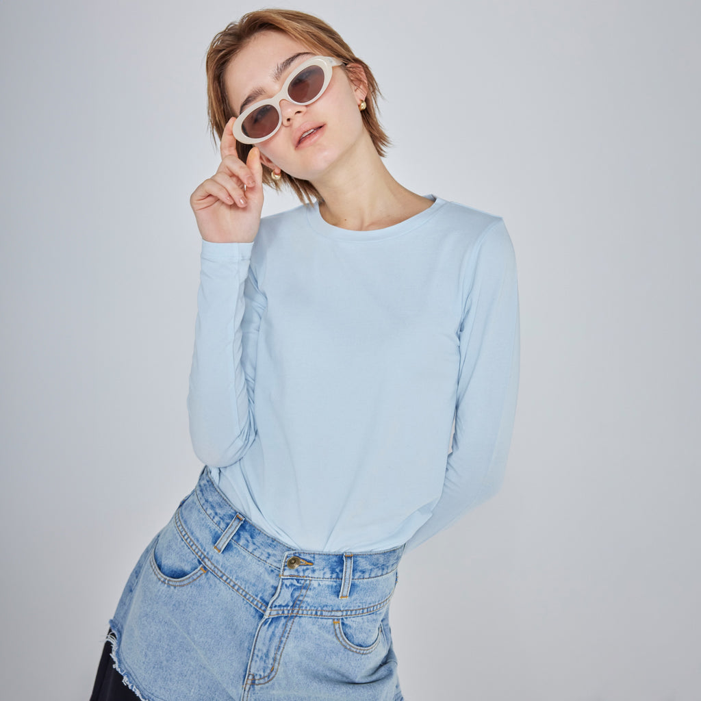 A simple long-sleeved top with a tight crew neck. It can be worn with any outfit, from casual to feminine. The powdery spring colors are perfect for adding an accent color.