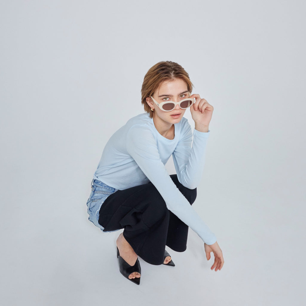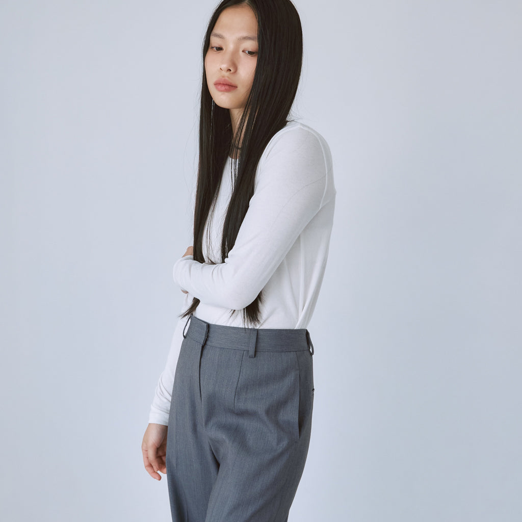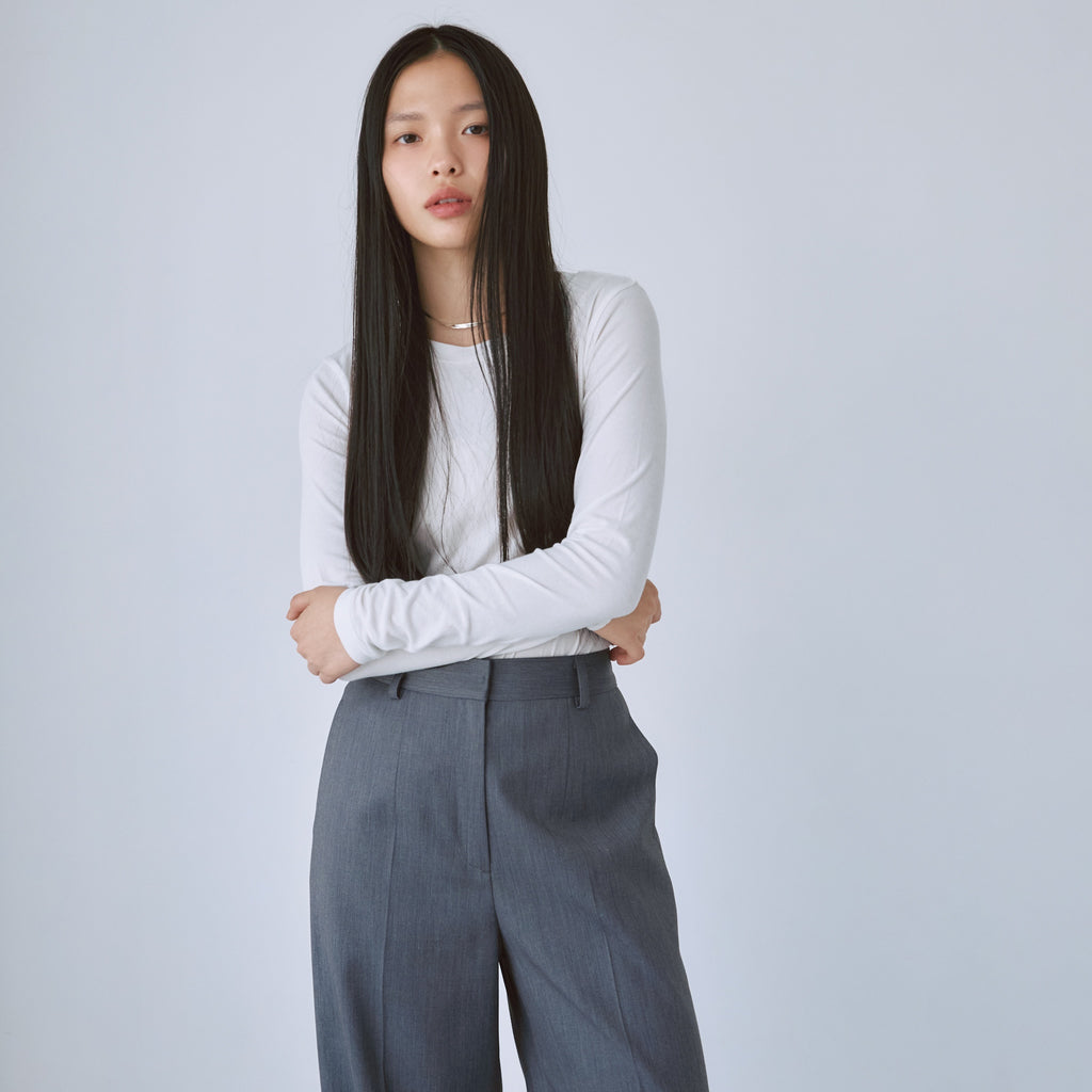 A simple long-sleeved top with a tight crew neck. It can be worn with any outfit, from casual to feminine. The powdery spring colors are perfect for adding an accent color.