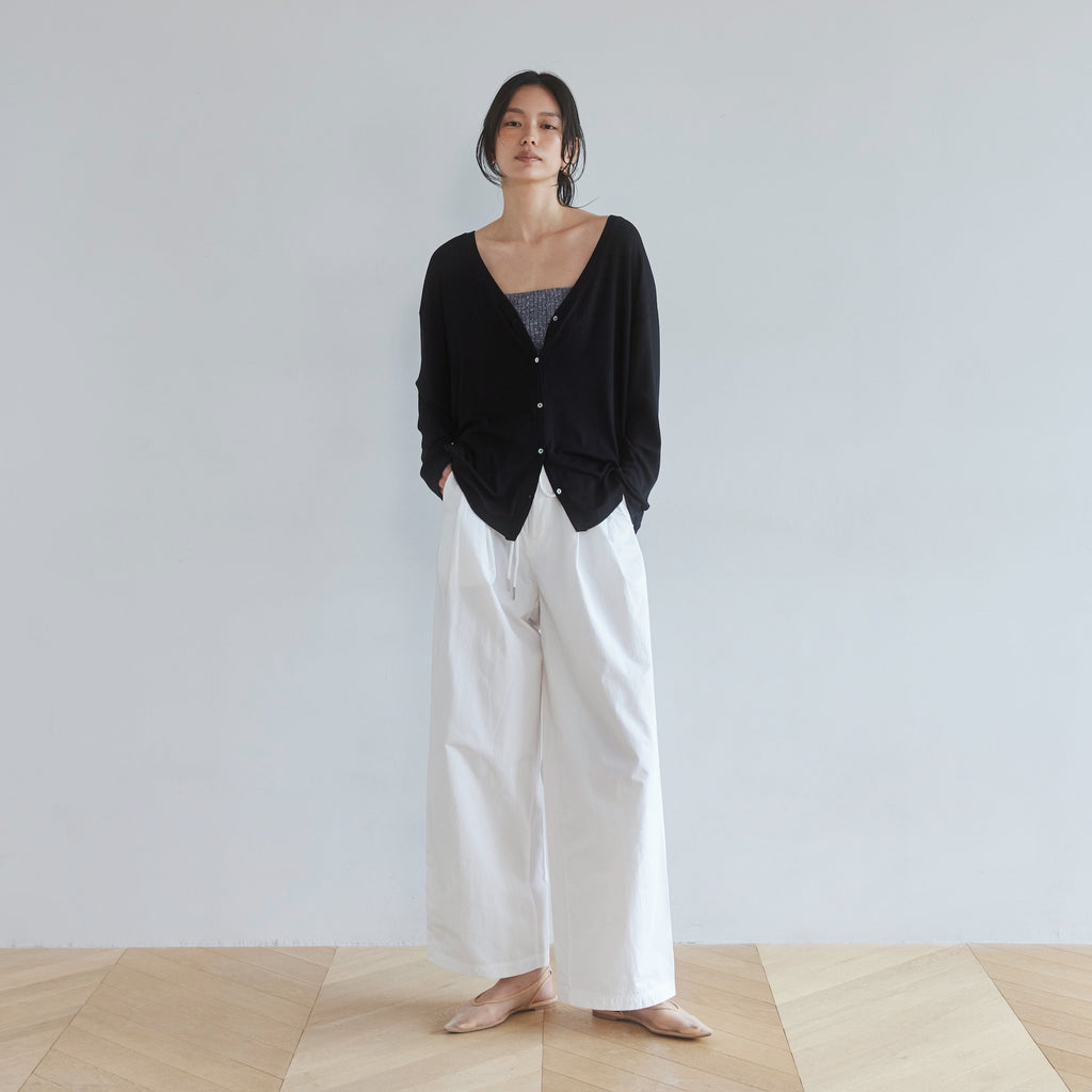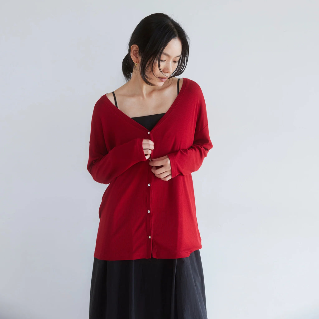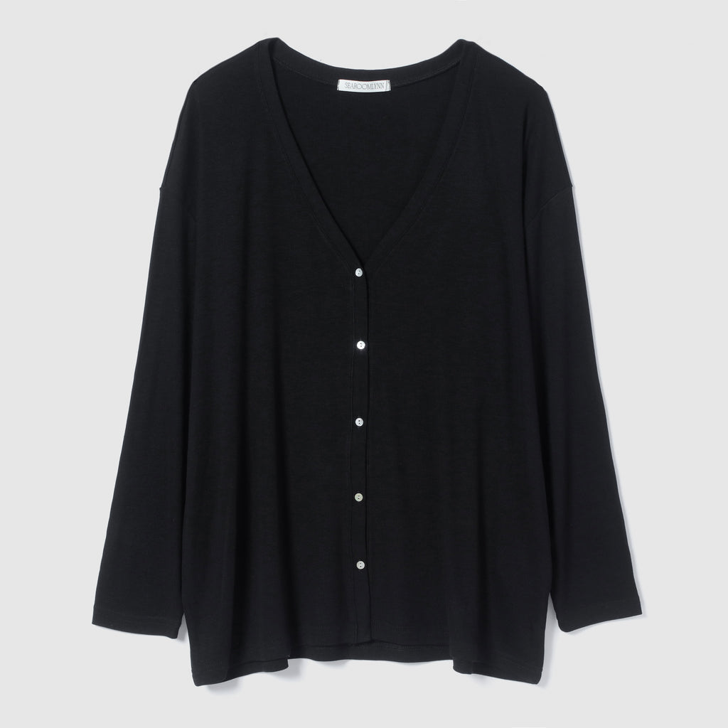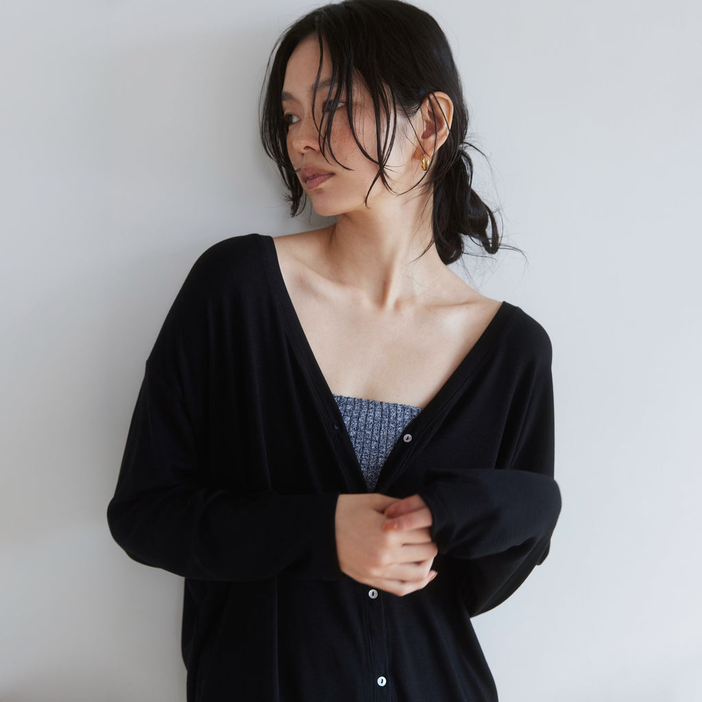 This basic cardigan is made of soft, high-quality fabric and is oversized and easy to wear. Its versatility makes it a useful item to have on hand.
