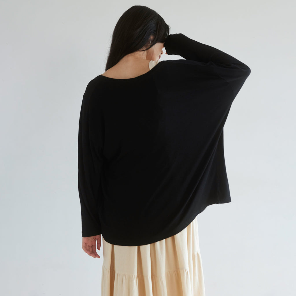 The overall look is loose and oversized. The drop shoulders give it an effortless look. The size covers the hips, so it's also useful for hiding your figure.