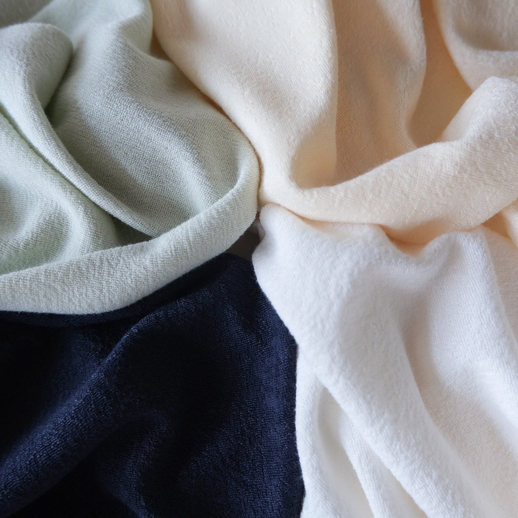 A comfortable mini pile material with a drape and stretch. The pile weave direction creates a mottled look. The smooth reverse side feels great against the skin.