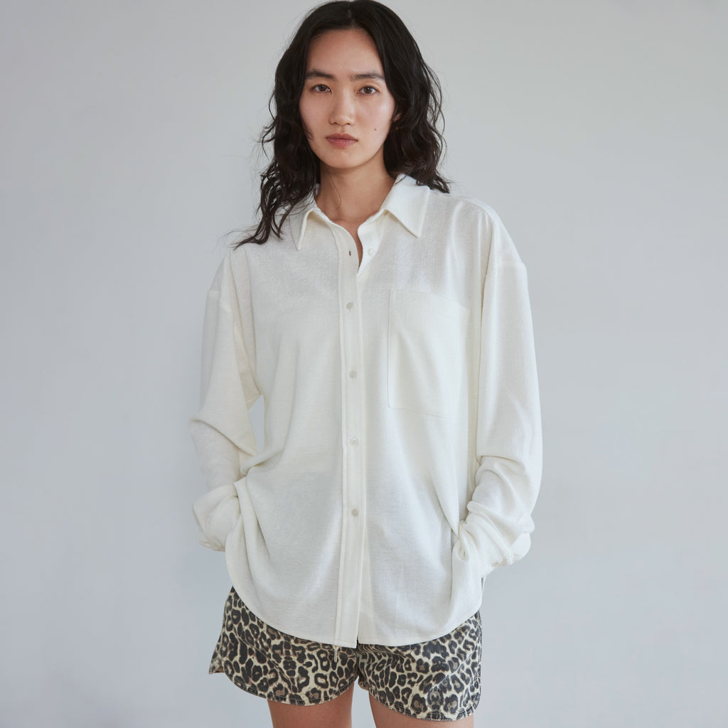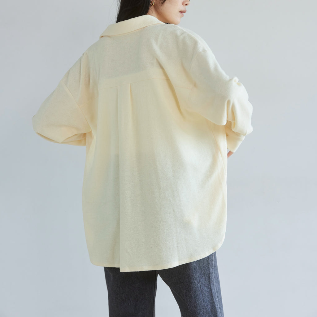 Introducing a relaxing shirt made of soft pile fabric. It is less likely to wrinkle than a regular shirt and is easier to move around in.