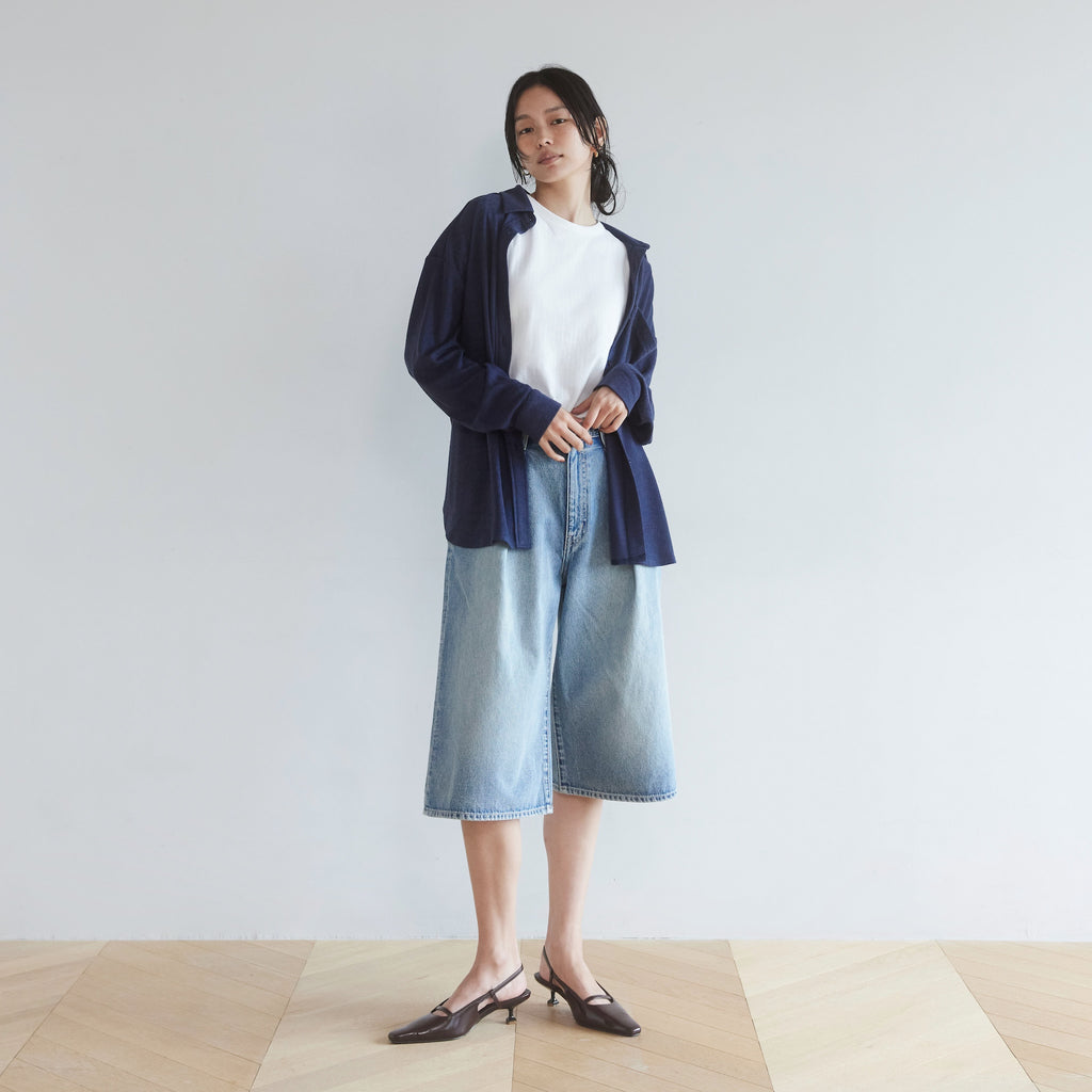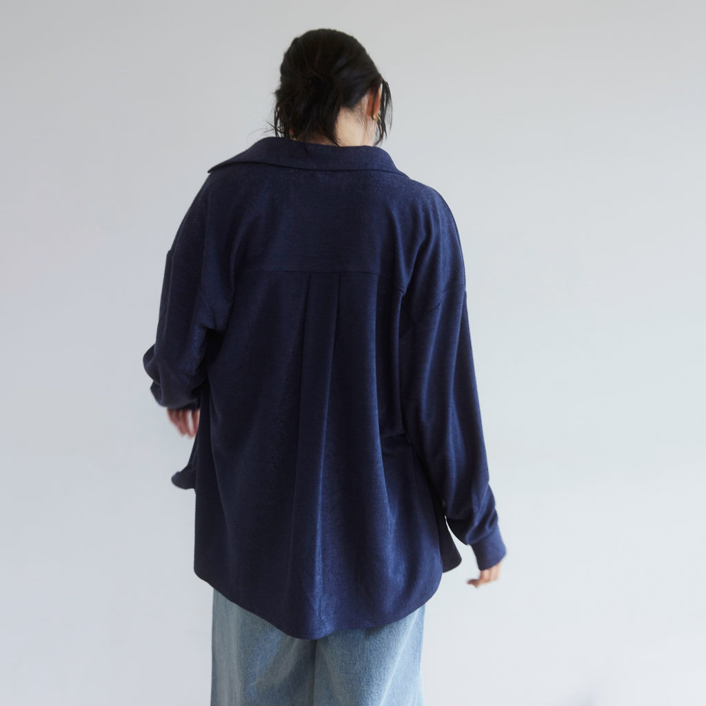 Oversized box silhouette. The back has a yoke and tucks for a shirt-like look. Can also be worn as a jacket.