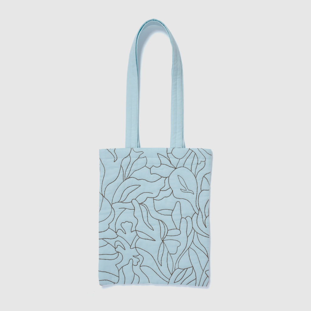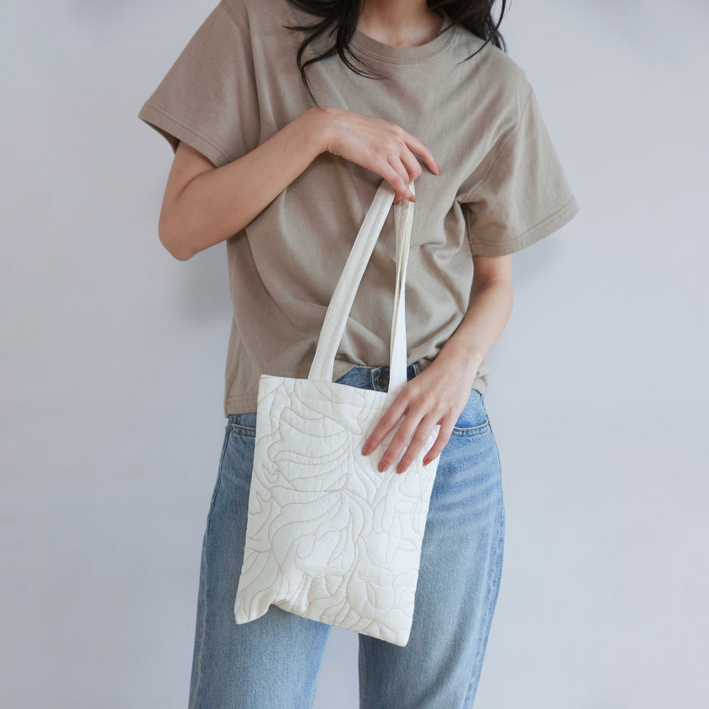 The mini tote bag features an original floral pattern finished with embroidery. Its sleek form and small size make it not bulky. It is also recommended to coordinate it with the Flower wave embroidery vest, which is released at the same time, in different colors.