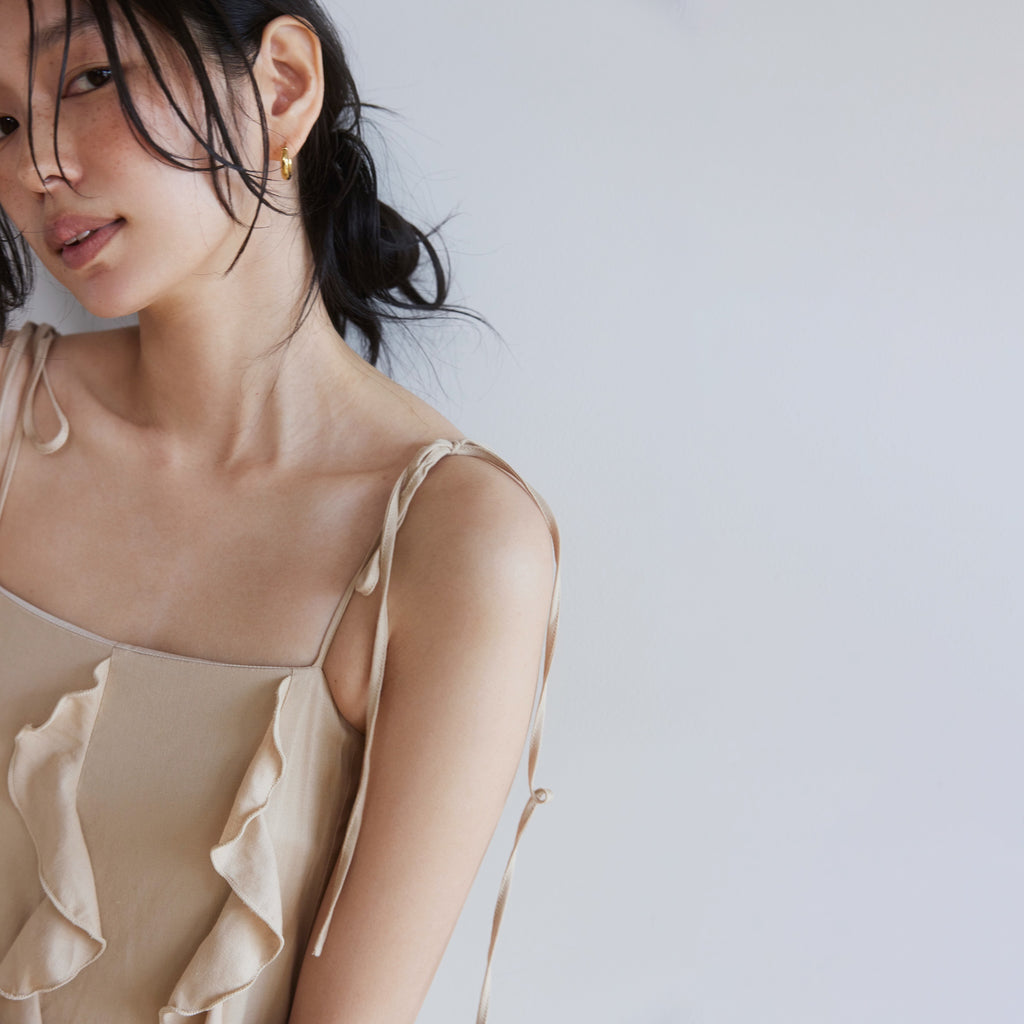 A linen-based fabric with a slightly rough texture that gives it a natural feel. We selected a fabric that has a dry touch and can be worn for a long time until summer. The rayon blend gives it a drape and a soft feel. It won't stick to your body even if you sweat, so you can wear it comfortably even in summer. All colors are lined so you can wear it without worrying about it being see-through.