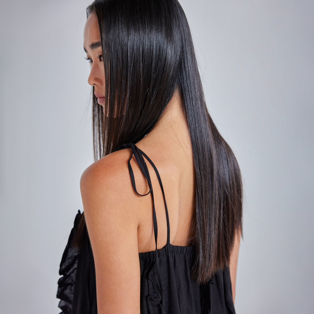 The strap is hand-tied with a ribbon for a girly look. The length can be adjusted to your liking.