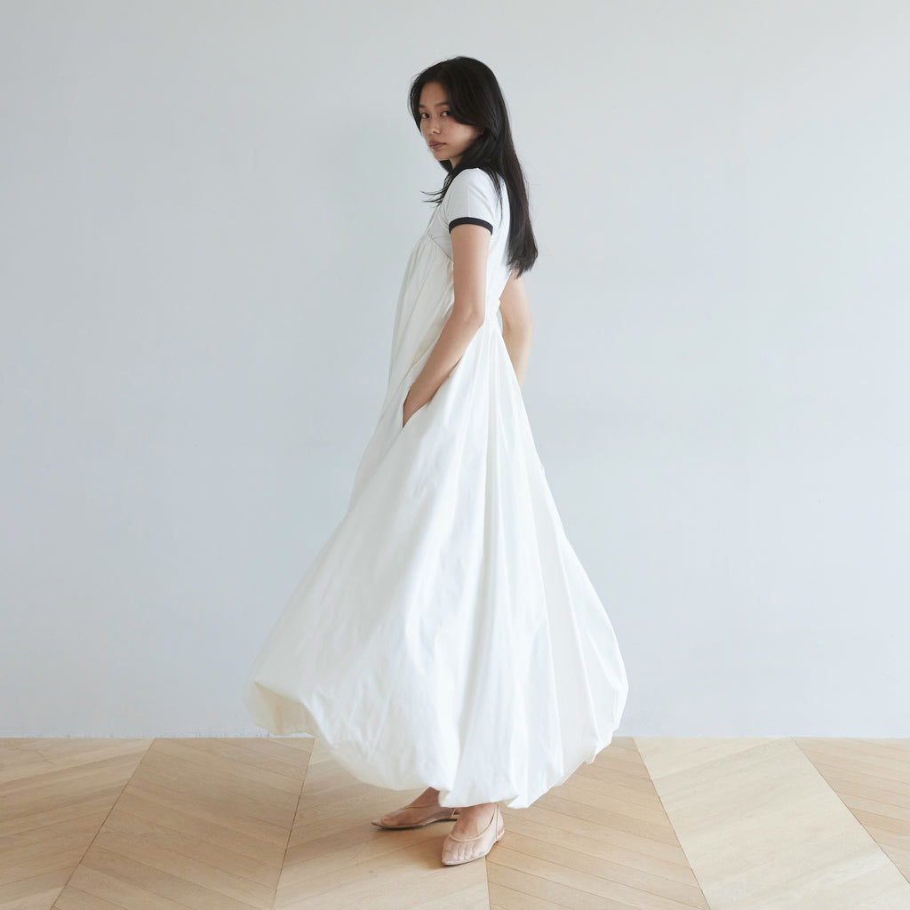 *The hem width and other dimensions are almost the same as the Volume Tuck Balloon Dress currently on sale, but this product has been gathered to create volume, so it will look different.