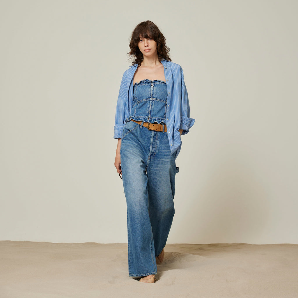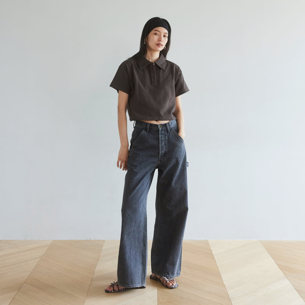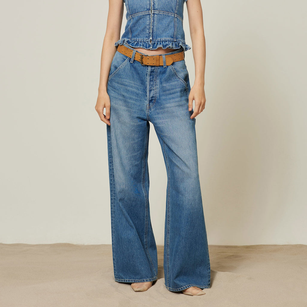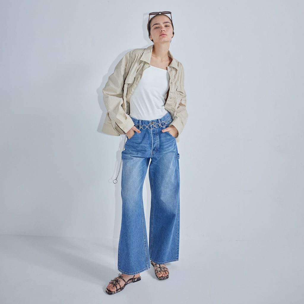 Introducing denim painter pants with cute subtle work details. The wide silhouette gives a relaxed fit and makes your legs look longer and more beautiful at the same time.