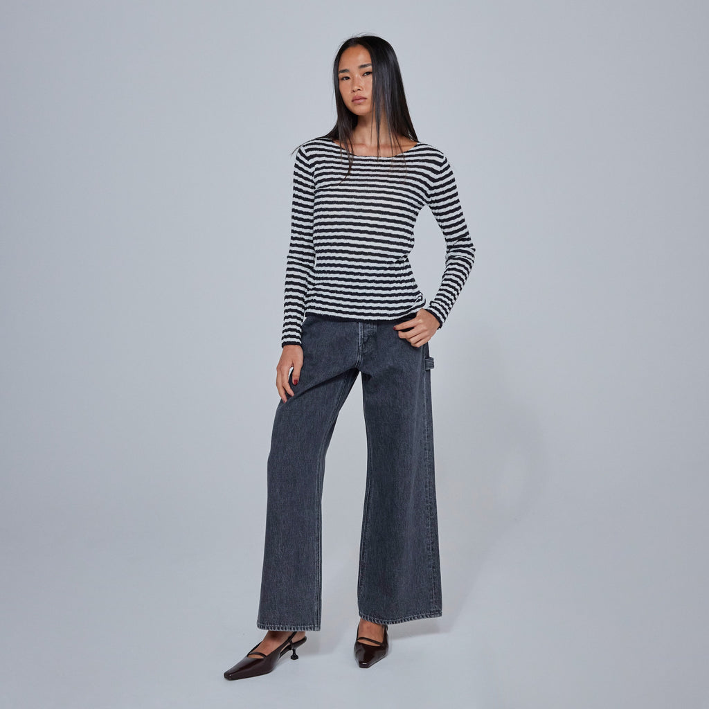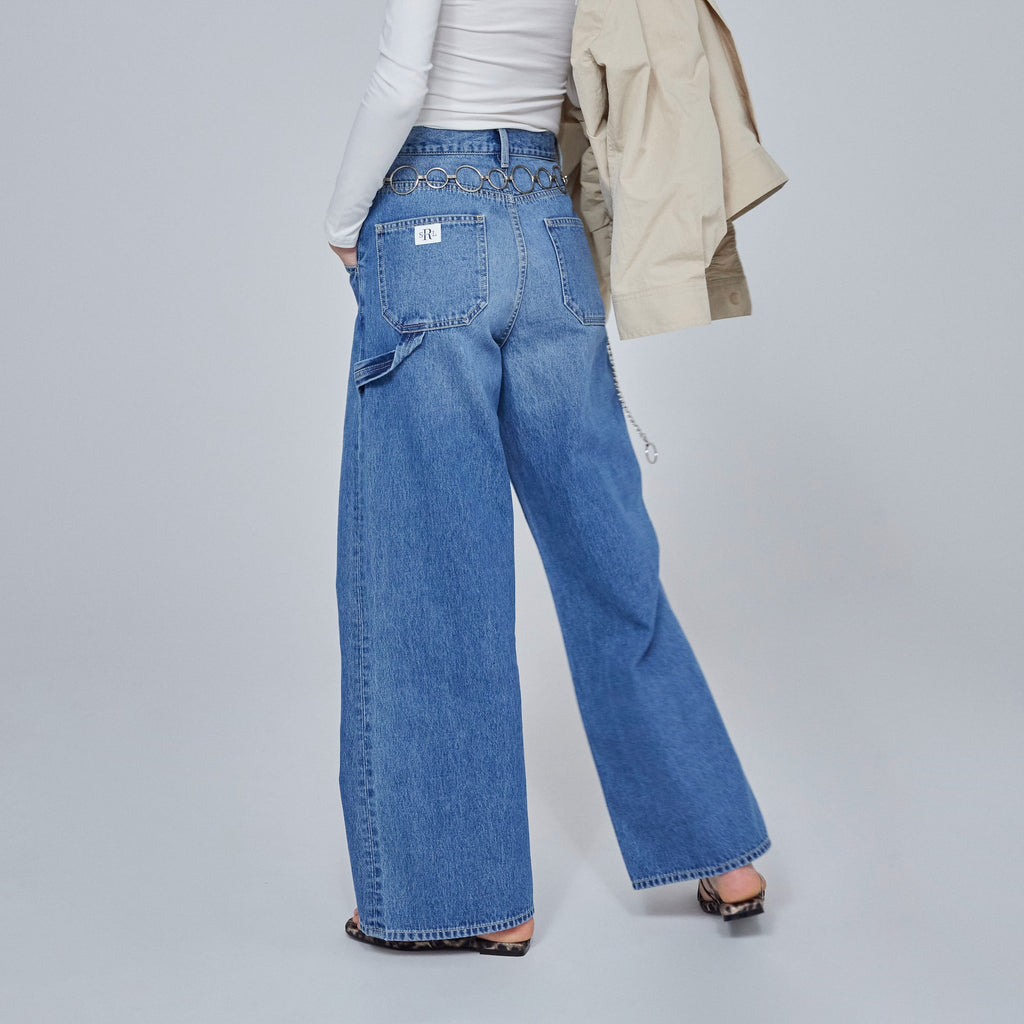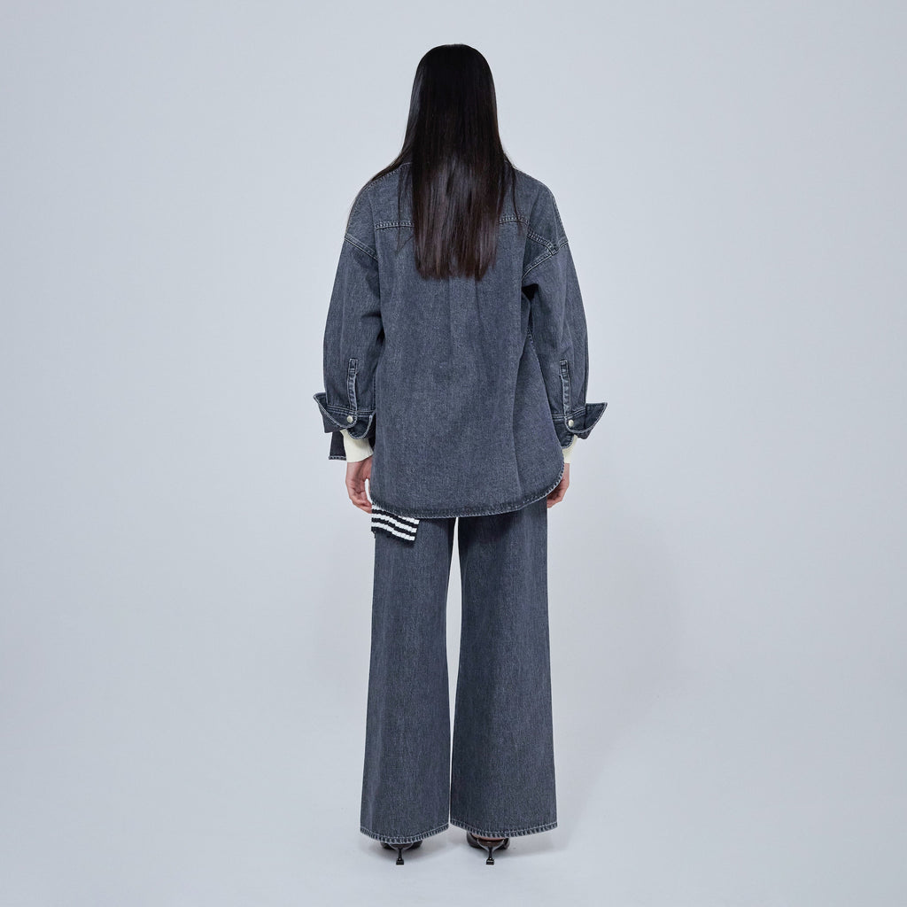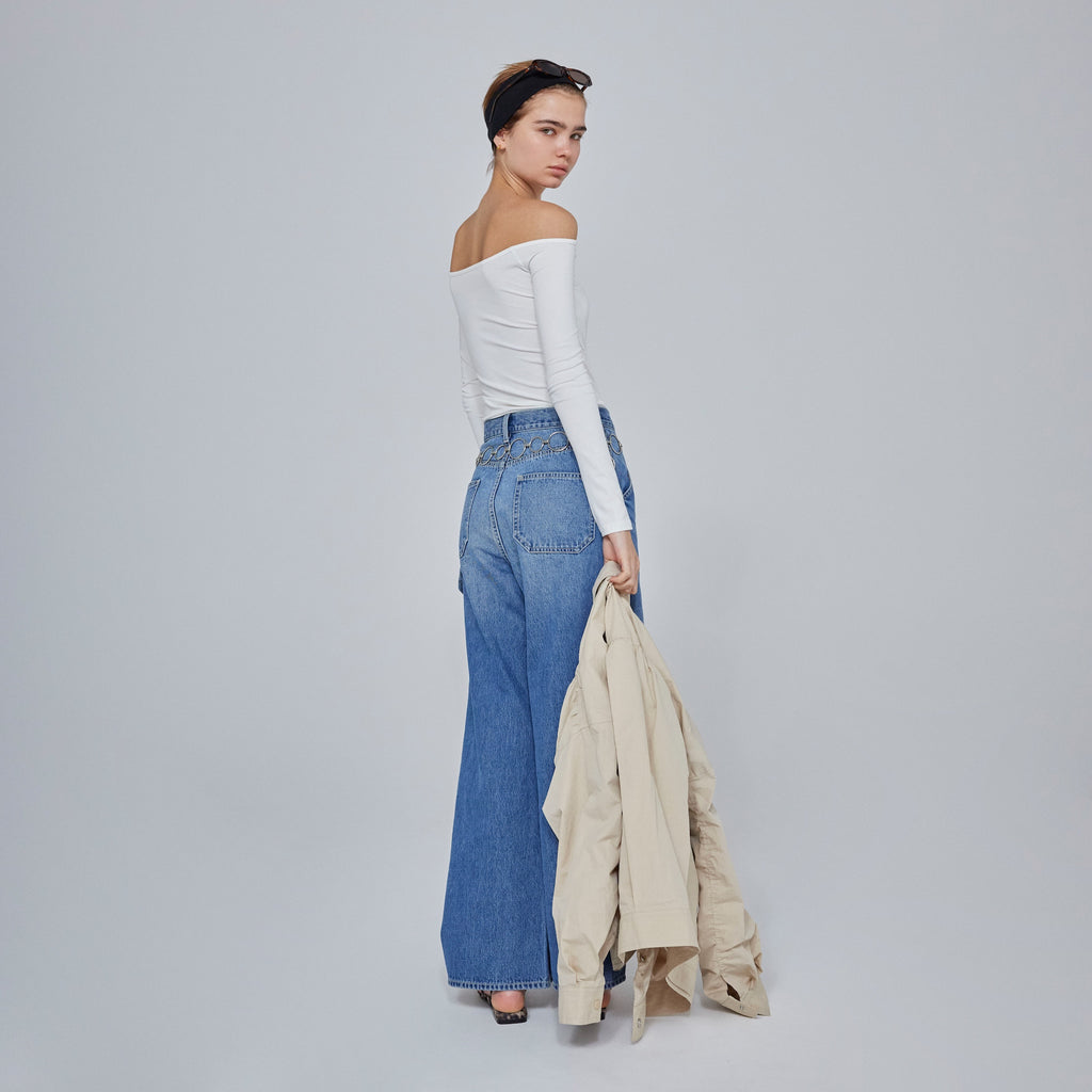 Introducing denim painter pants with cute subtle work details. The wide silhouette gives a relaxed fit and makes your legs look longer and more beautiful at the same time.