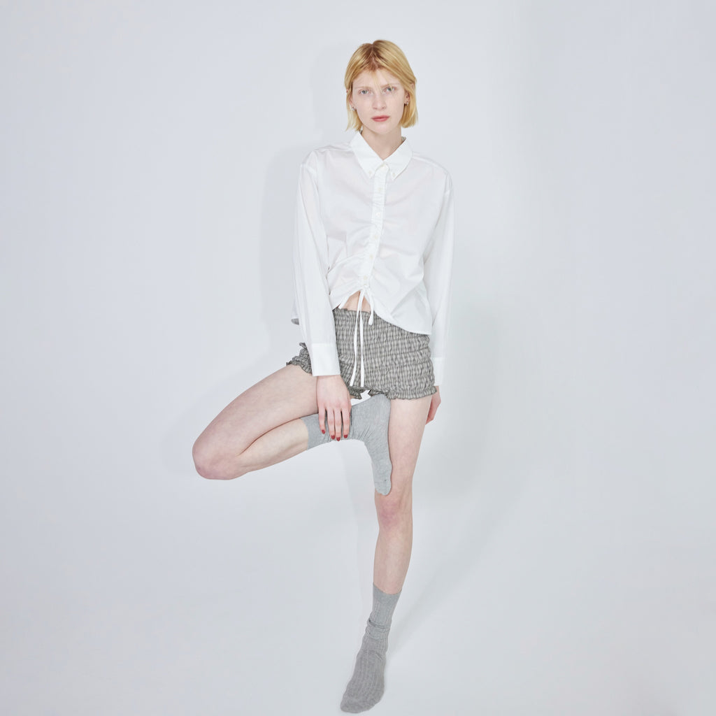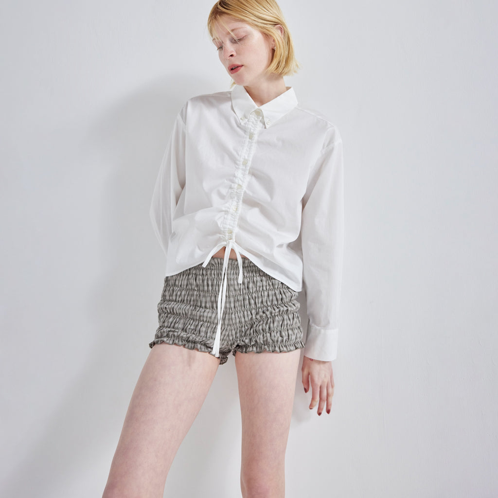 ◆ Coordination It can be paired with the Cotton Wash Button-Down Tuck Shirt. Try the Cotton Wash Flower Scrunchie, made of the same material, together.