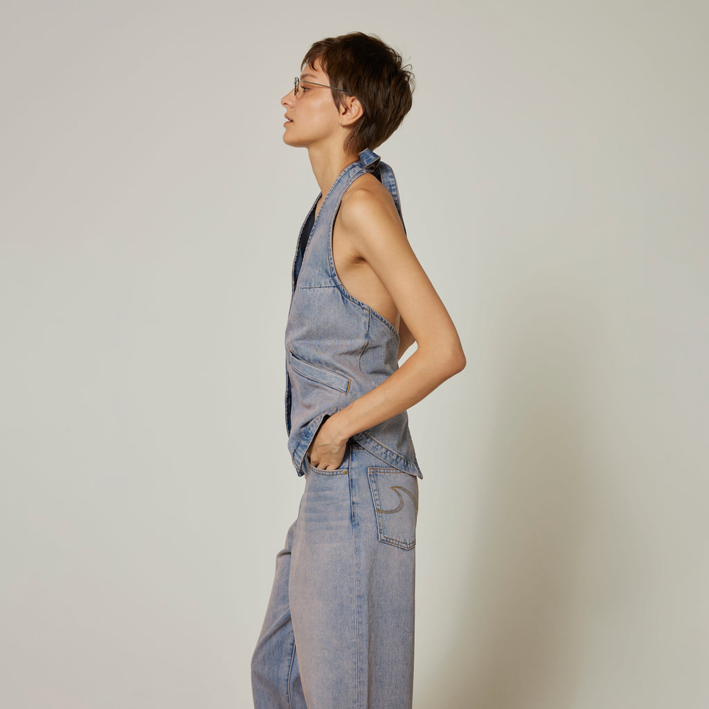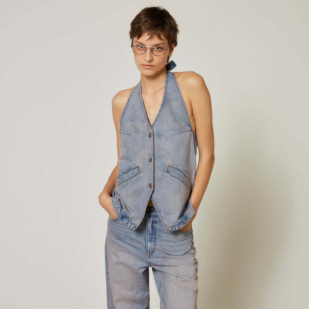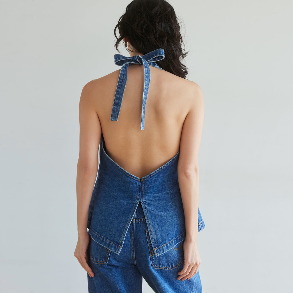 A-line Denim Halter Vest