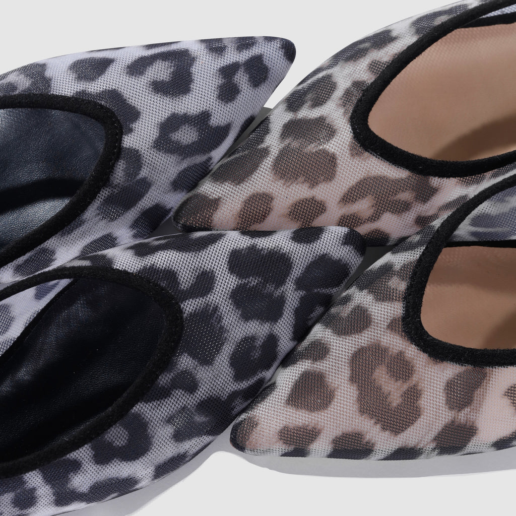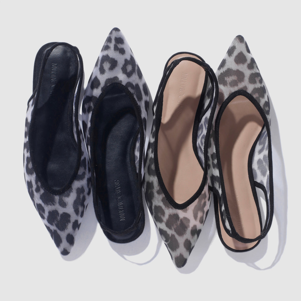 LEOPARD TULLE BACK STRAP MULES
