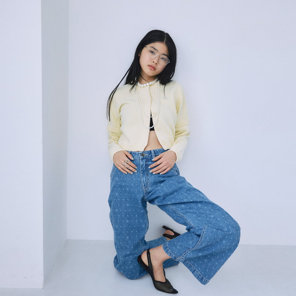 ◆ Coordination It can be worn casually with denim or wide pants, or paired with 2-way satin wrap pants for a more ladylike look.