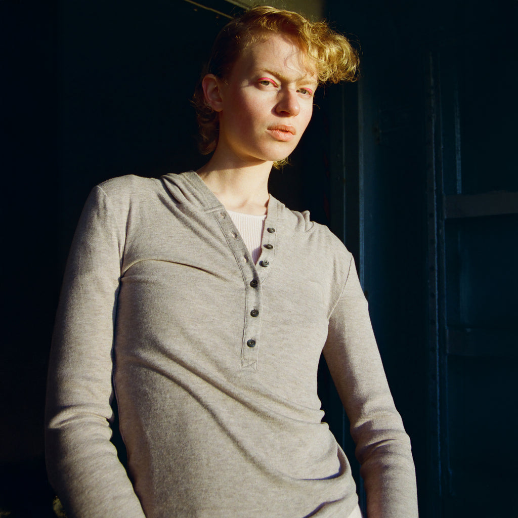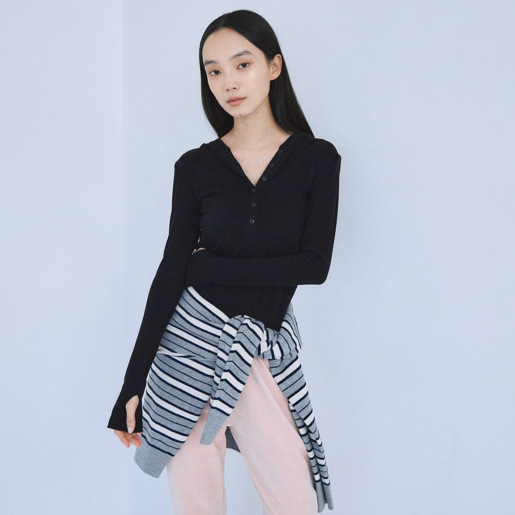 The deep Henley neck and hood combine to create a mature, casual design that provides a beautiful, tight silhouette while still allowing for ease of movement.