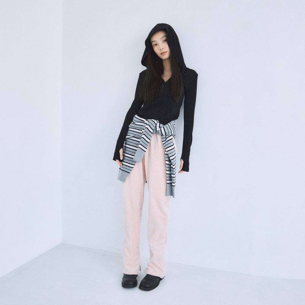 ◆ Coordination: The tight silhouette goes well with wide pants and flared skirts.