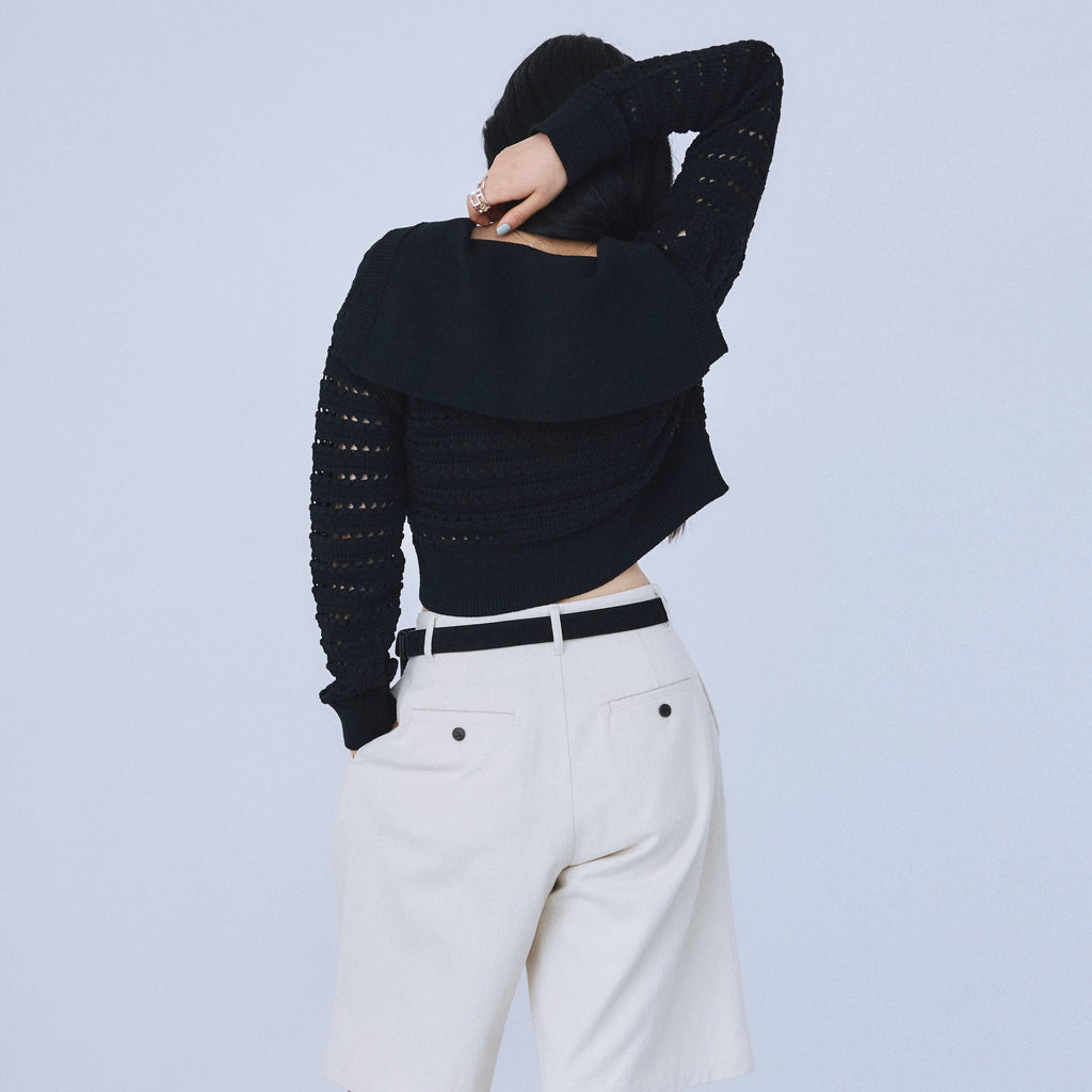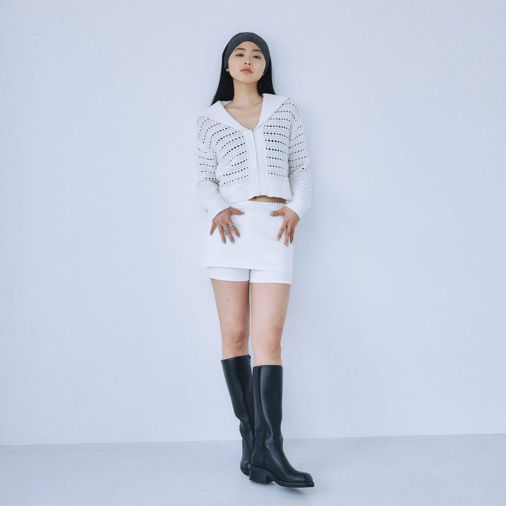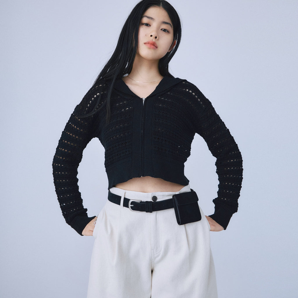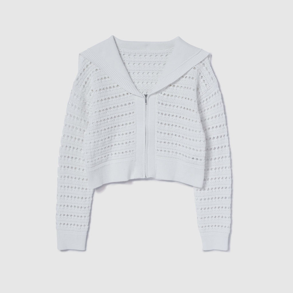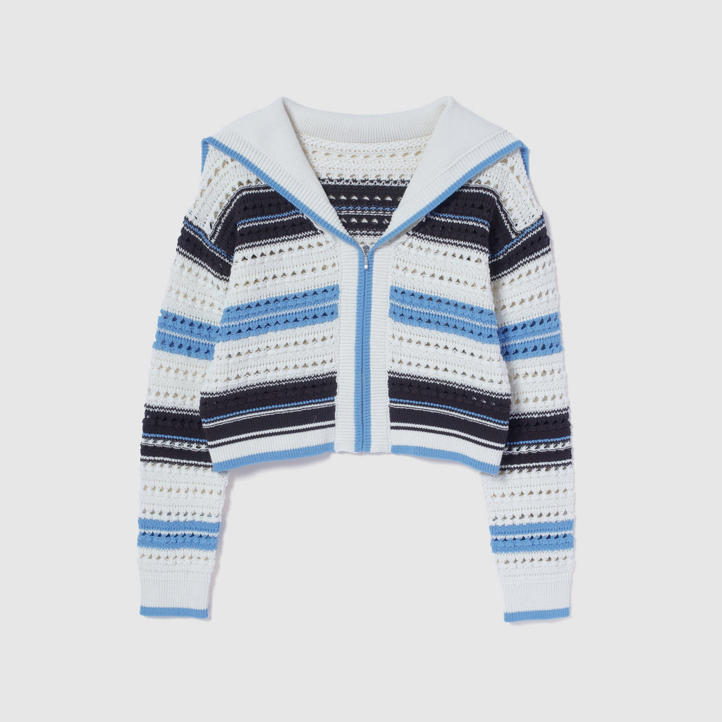 Sailor collar knit zip cardigan