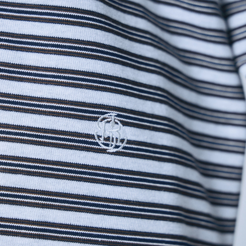 A rugby shirt featuring fine-pitch random borders on high-quality cotton cut-and-sew.