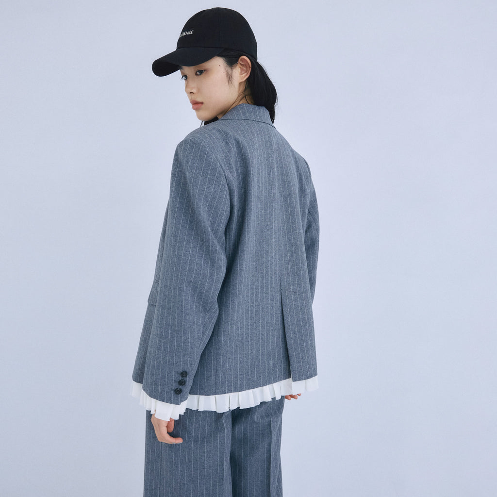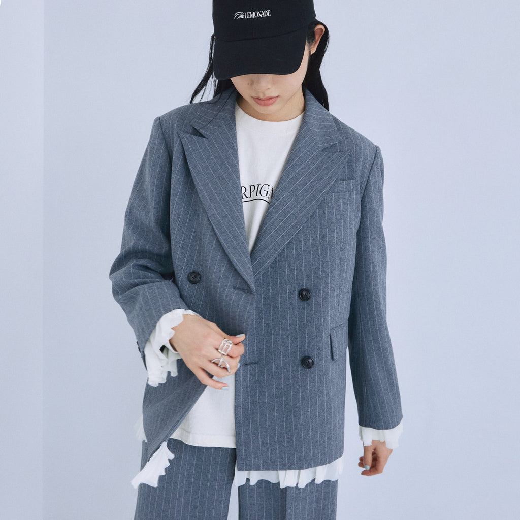 ◆Coordination It can be worn as a set with the Pinstripe 2-tuck slacks made from the same material, and we also recommend wearing it over your shoulders as a jacket over denim.