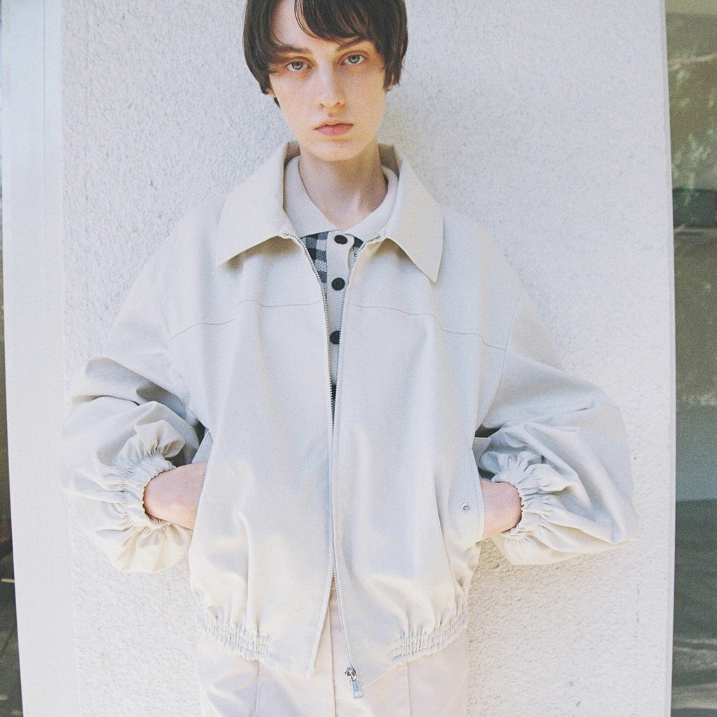 A high-quality short curvy blouson made from different materials depending on the color.