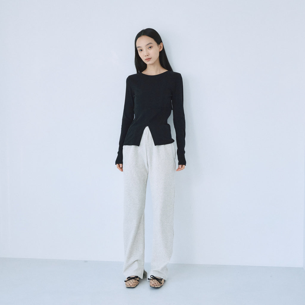 The elastic waist makes it comfortable to wear, and the subtle slits at the hem add a light feel with every step.