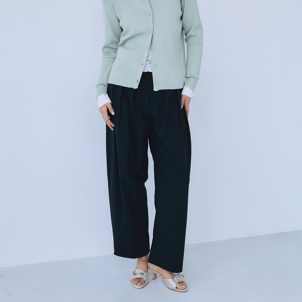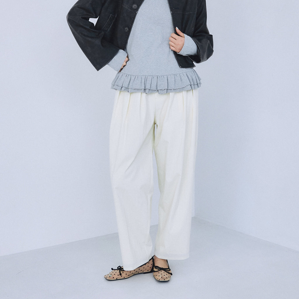 Cotton nylon 3-tuck pants