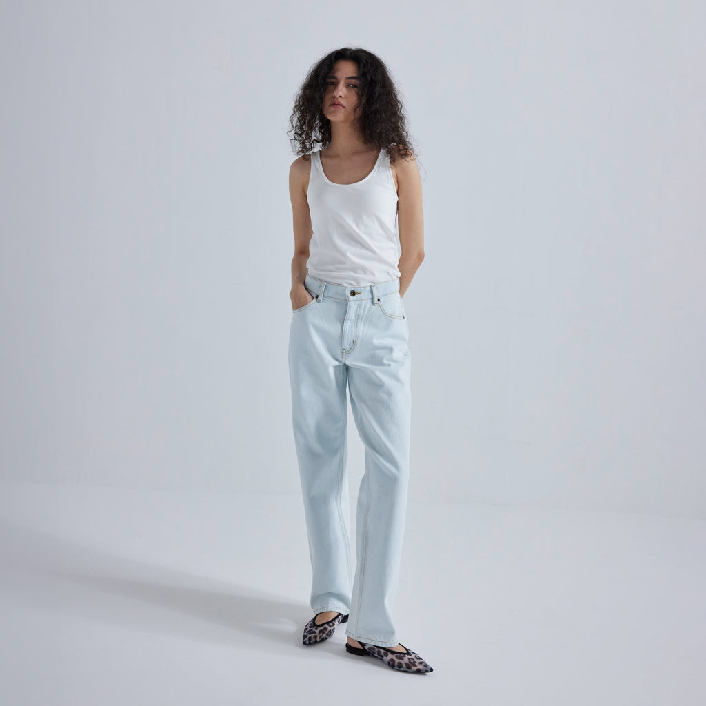 Introducing a new denim that can be worn loosely with a low waist. The fabric, processing, and silhouette all recreate the feel of vintage clothing. The slightly linear tapered shape gives a clean impression.