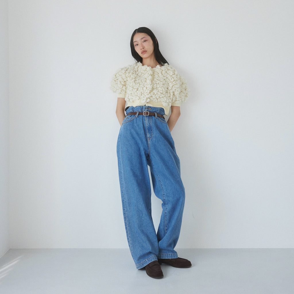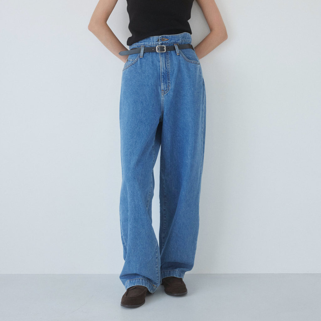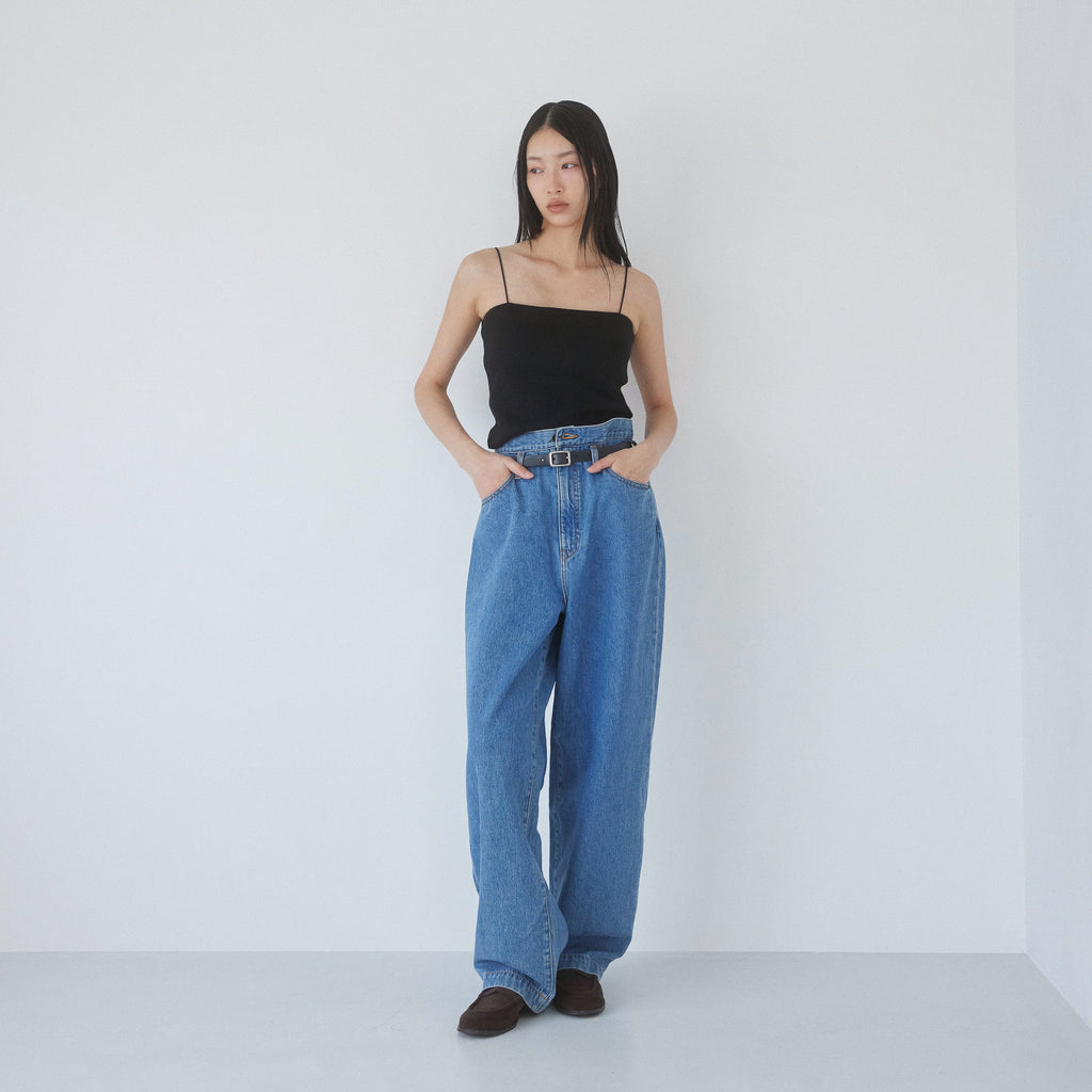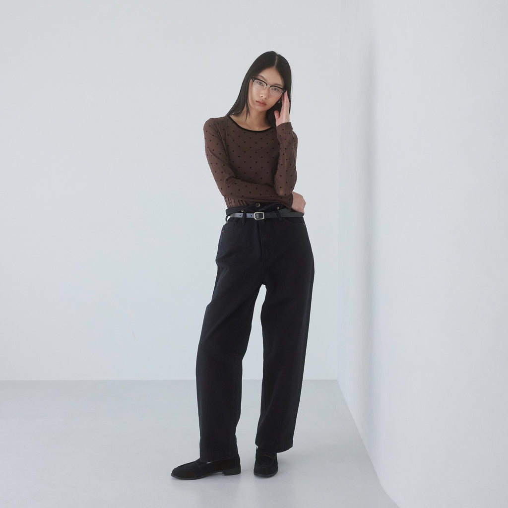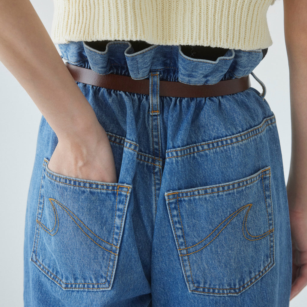 These wide-leg jeans have a vintage feel, with room around the waist and hips. The cute gathered waist design is also noteworthy. Now available again in a new color: black.