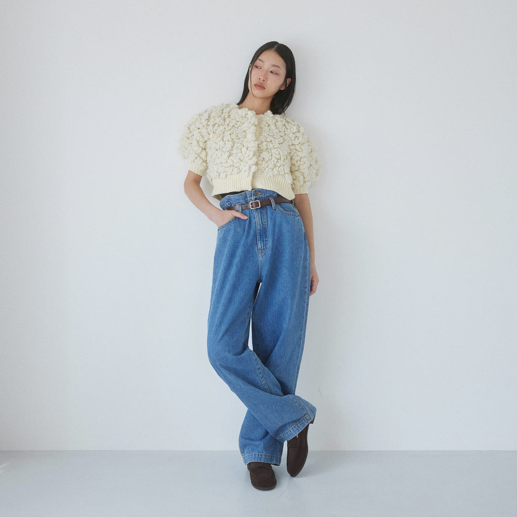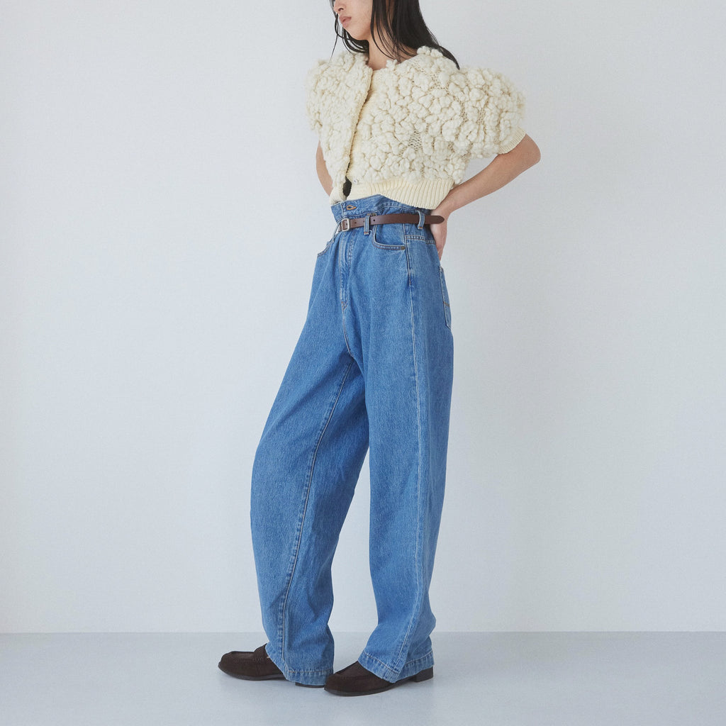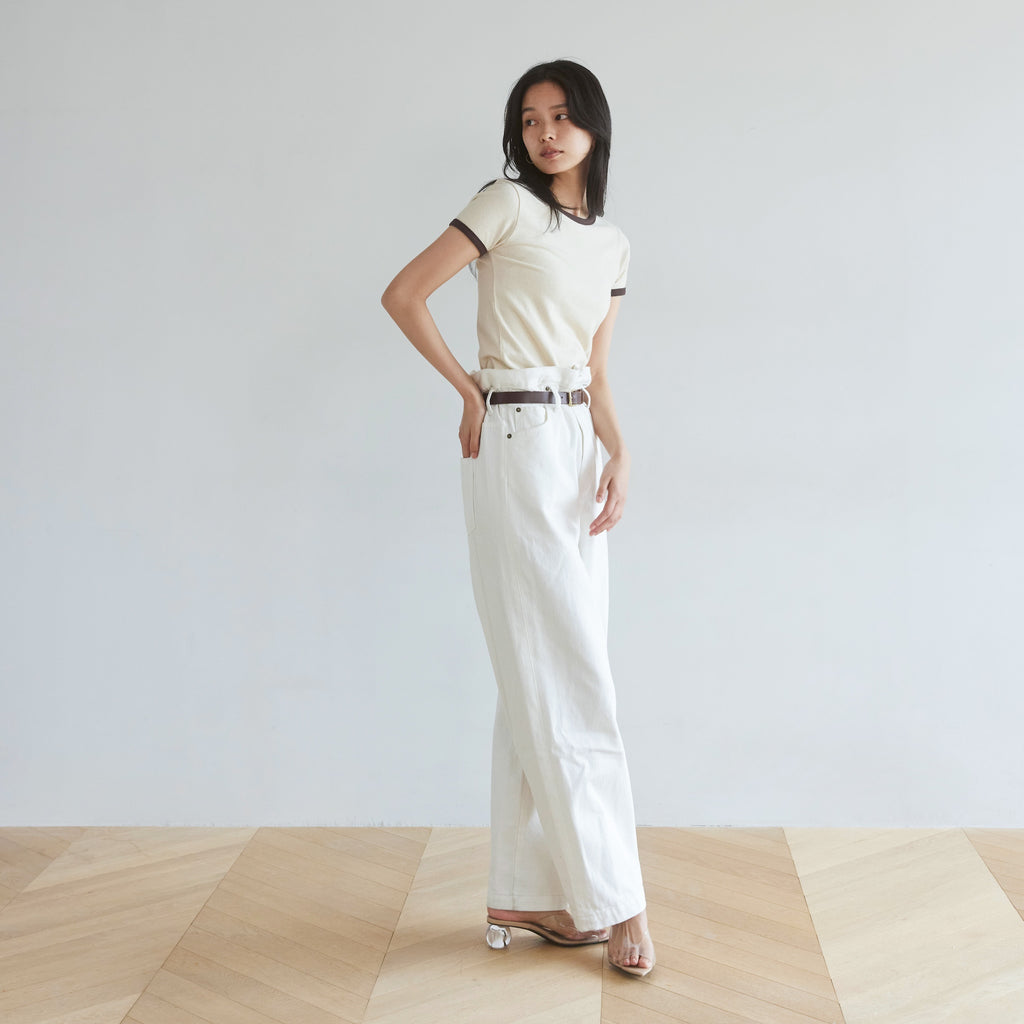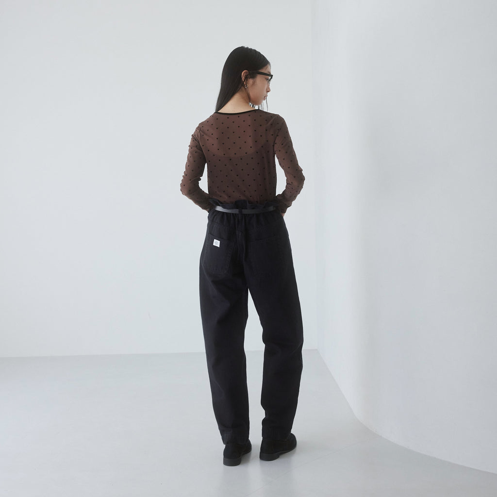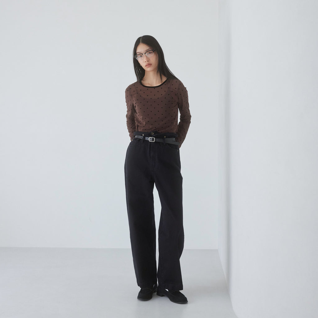 These wide-leg jeans have a vintage feel, with room around the waist and hips. The cute gathered waist design is also noteworthy. Now available again in a new color: black.
