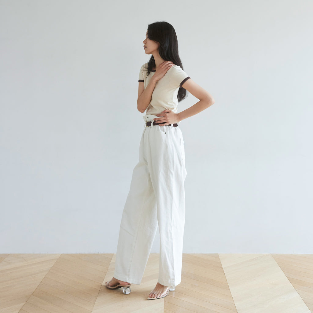 *Because the waist is elastic, you can wear this pair of pants one size up or down from your normal size. The appearance of the pants will change depending on the size you choose.