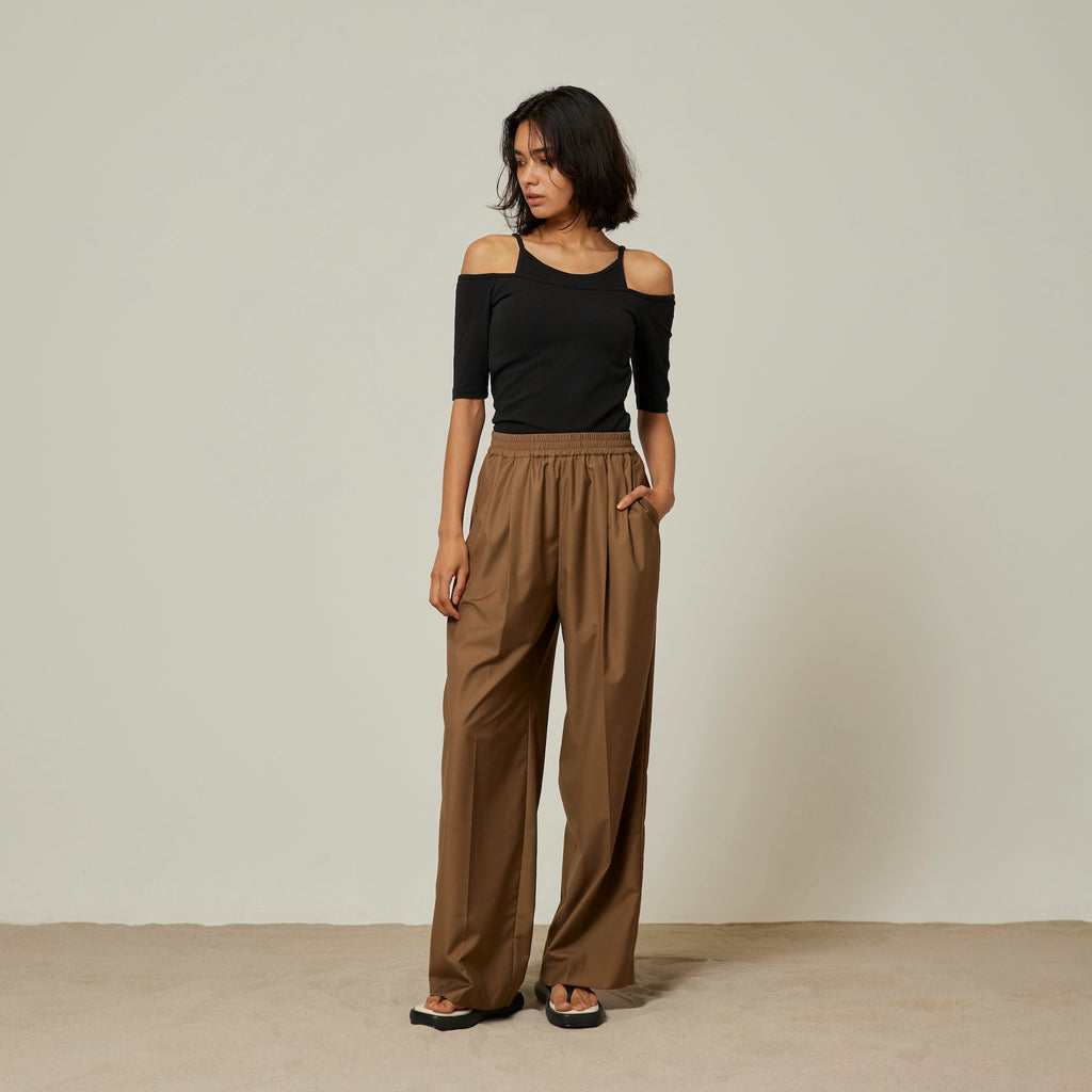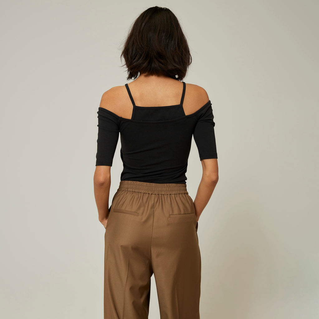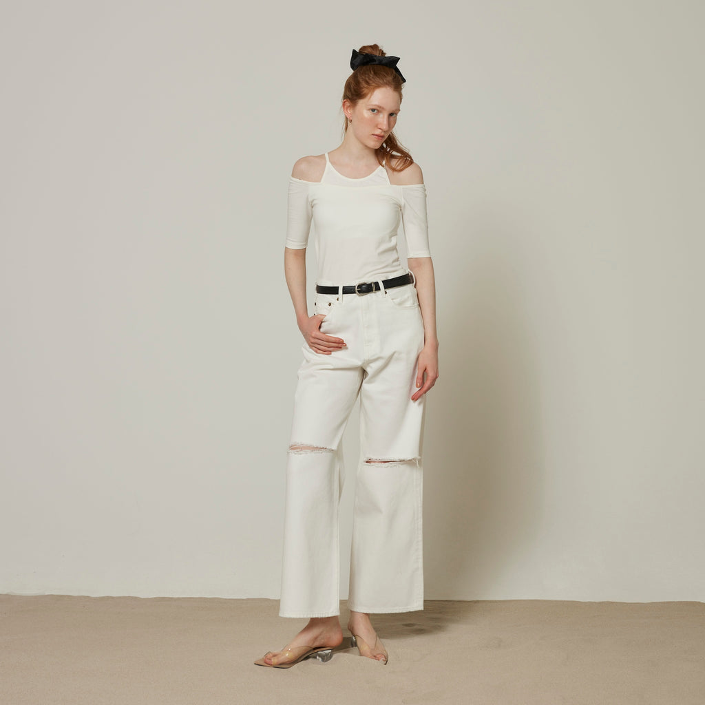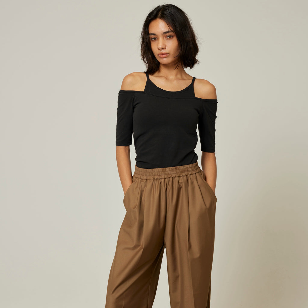 Last year's Smooth Touch Pad in Layered Tops has been updated with half sleeves. The contrast between the delicate American sleeves and the off-shoulder is appealing. It creates a sophisticated silhouette from the décolleté to the shoulders. The 5/4 sleeves are not too loose, so it can be styled in a variety of ways.