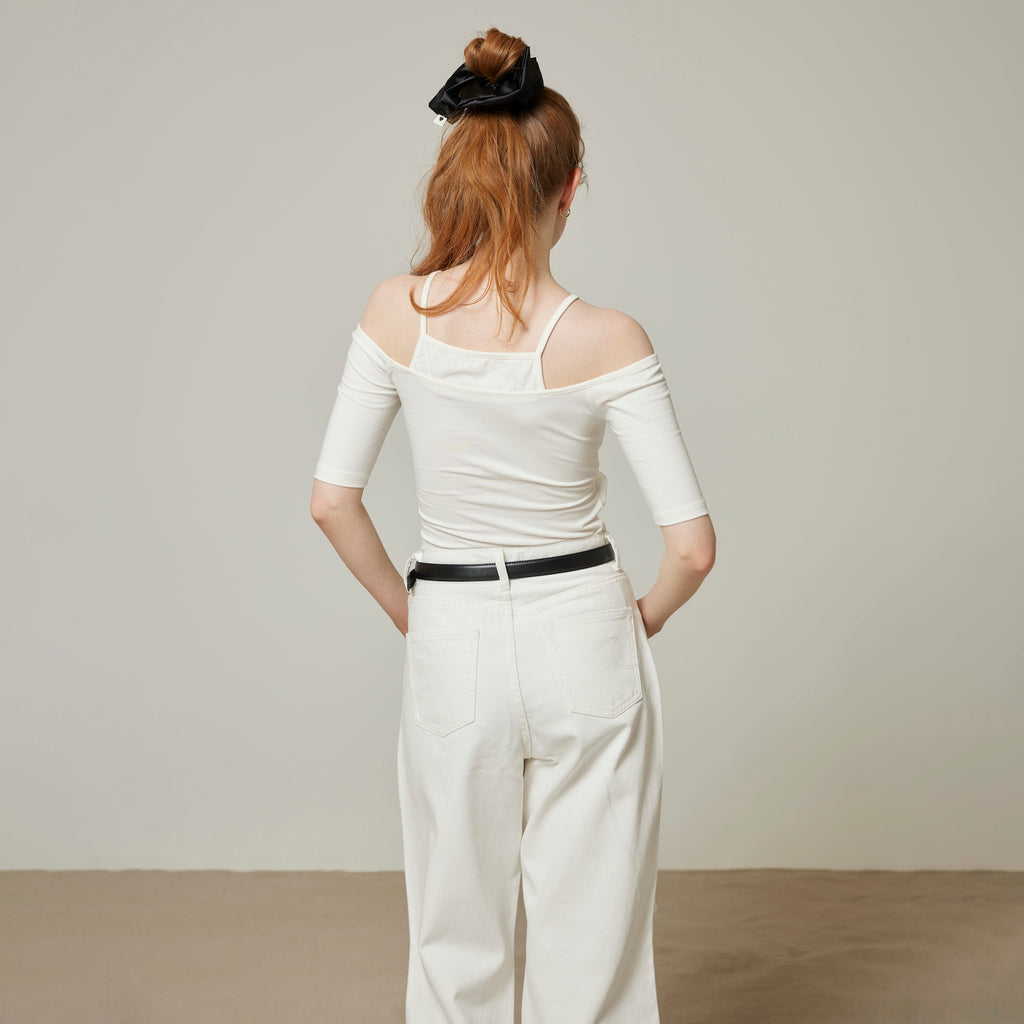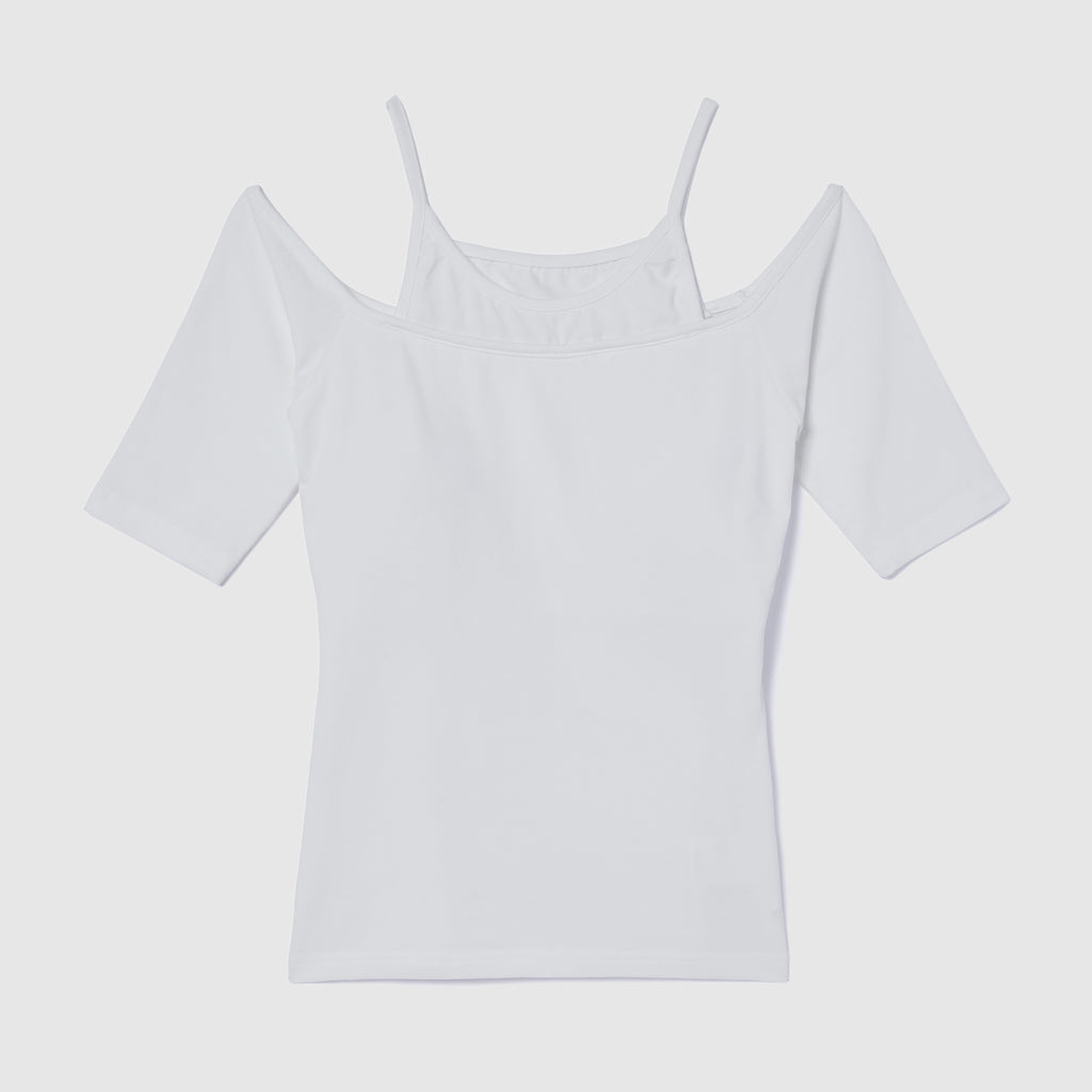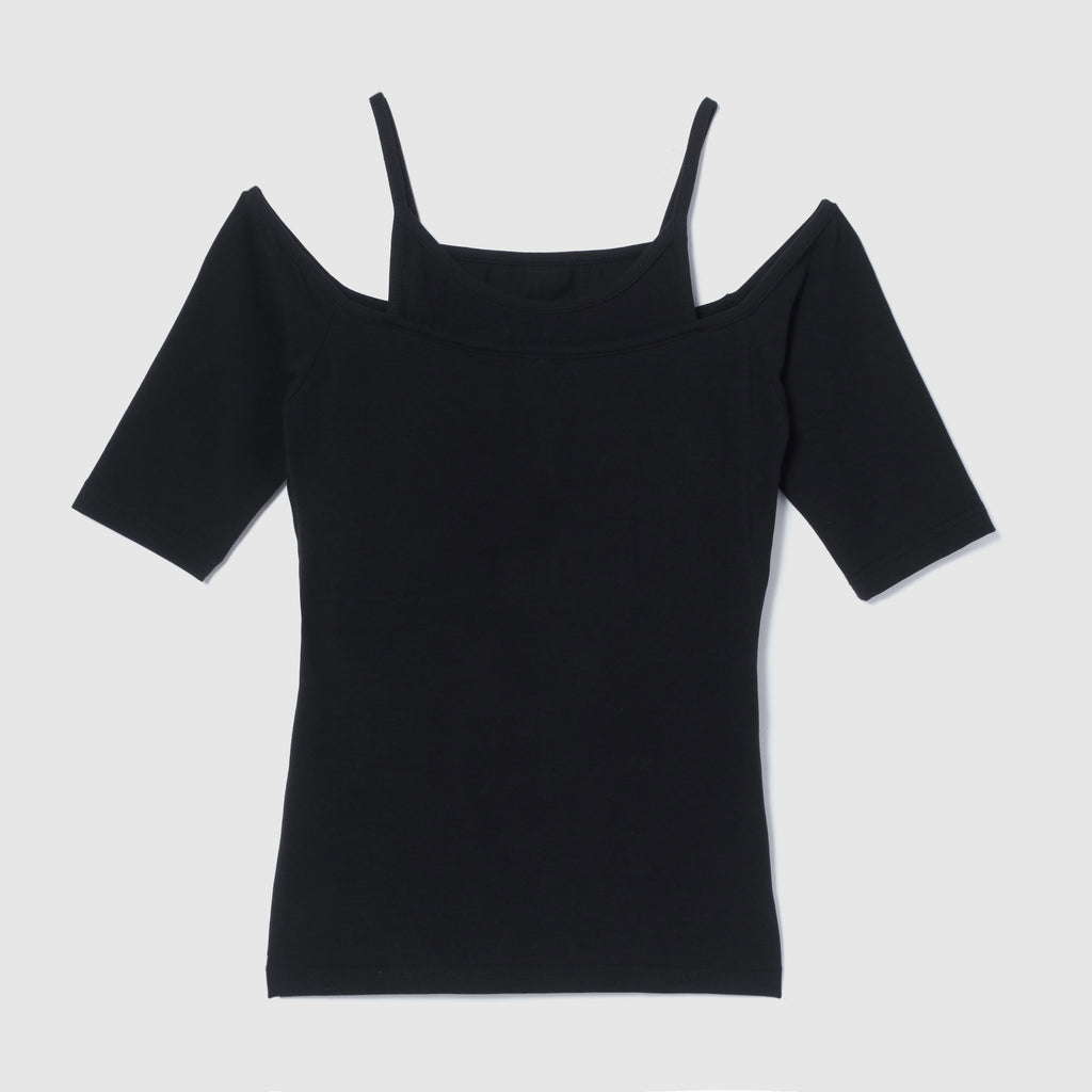 This series uses the popular "Smooth Touch" material. It combines an American style camisole with a half-sleeve off-the-shoulder top. It is padded so you can easily create a stylish outfit with just this one piece.