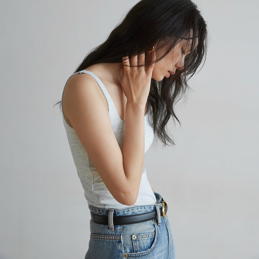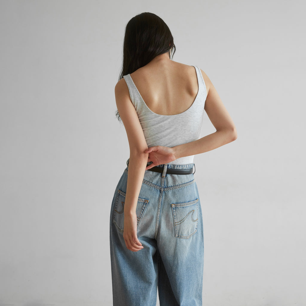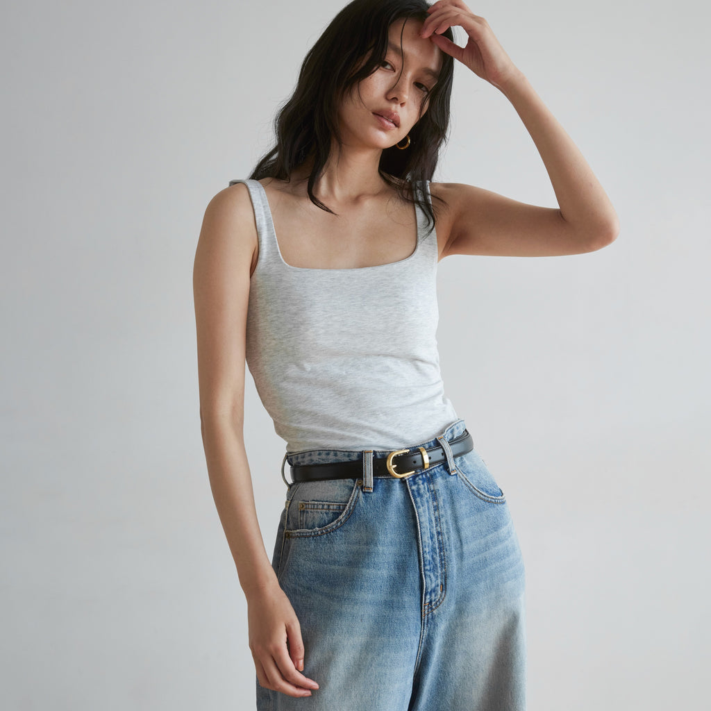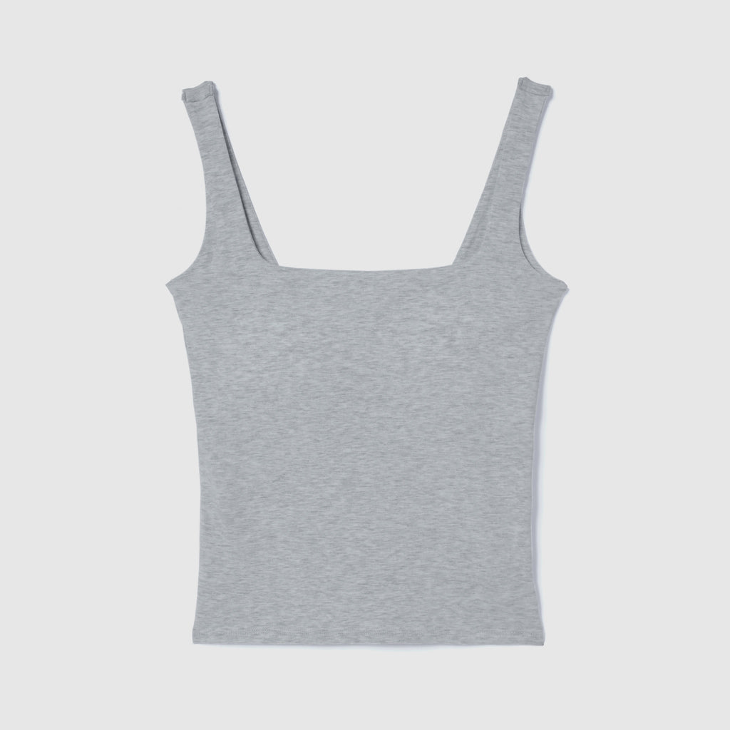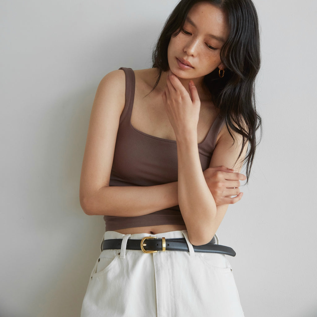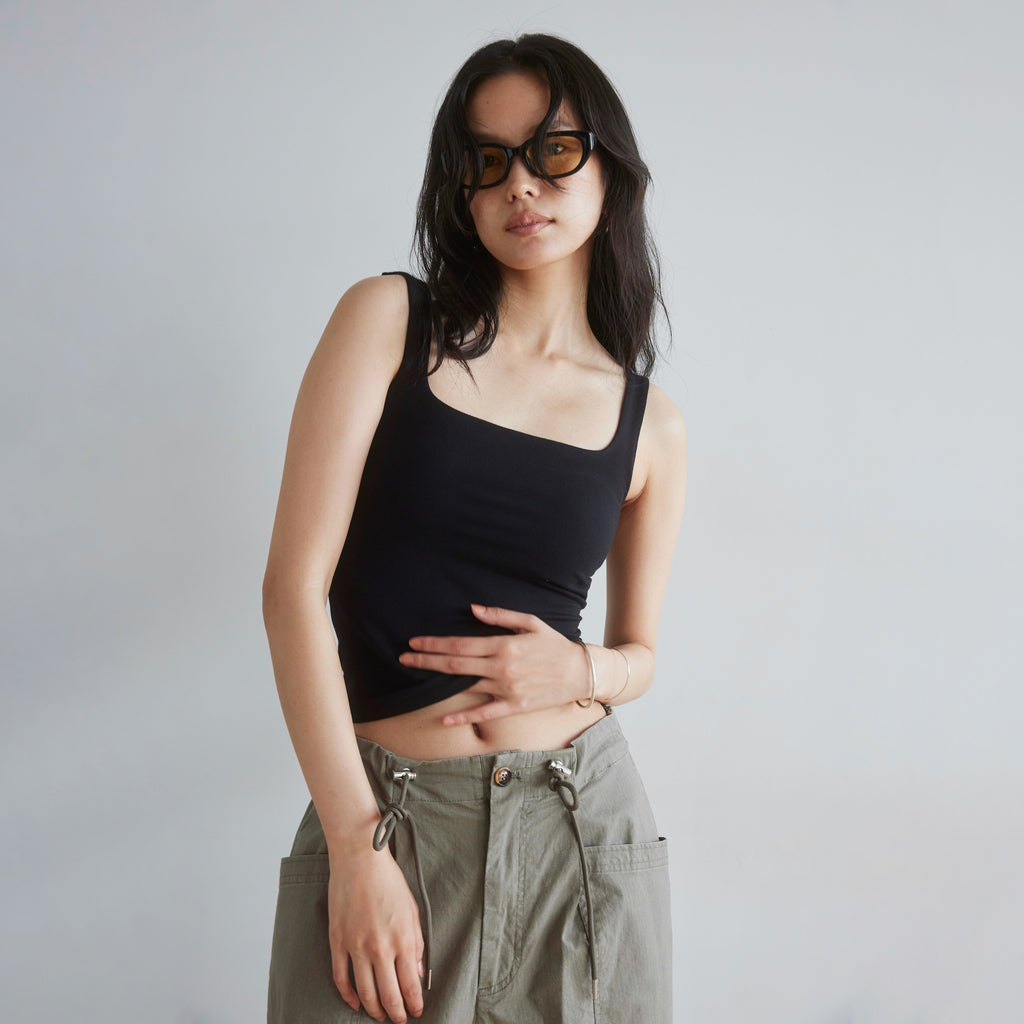 A tight silhouette that fits the body. It has the same length and bust size as the Fit Pad Marshmallow Basic Tank, but this time it is seamless for a more relaxed and soft feel. It is also sized to be easily worn as an inner layer.