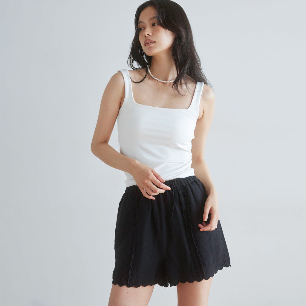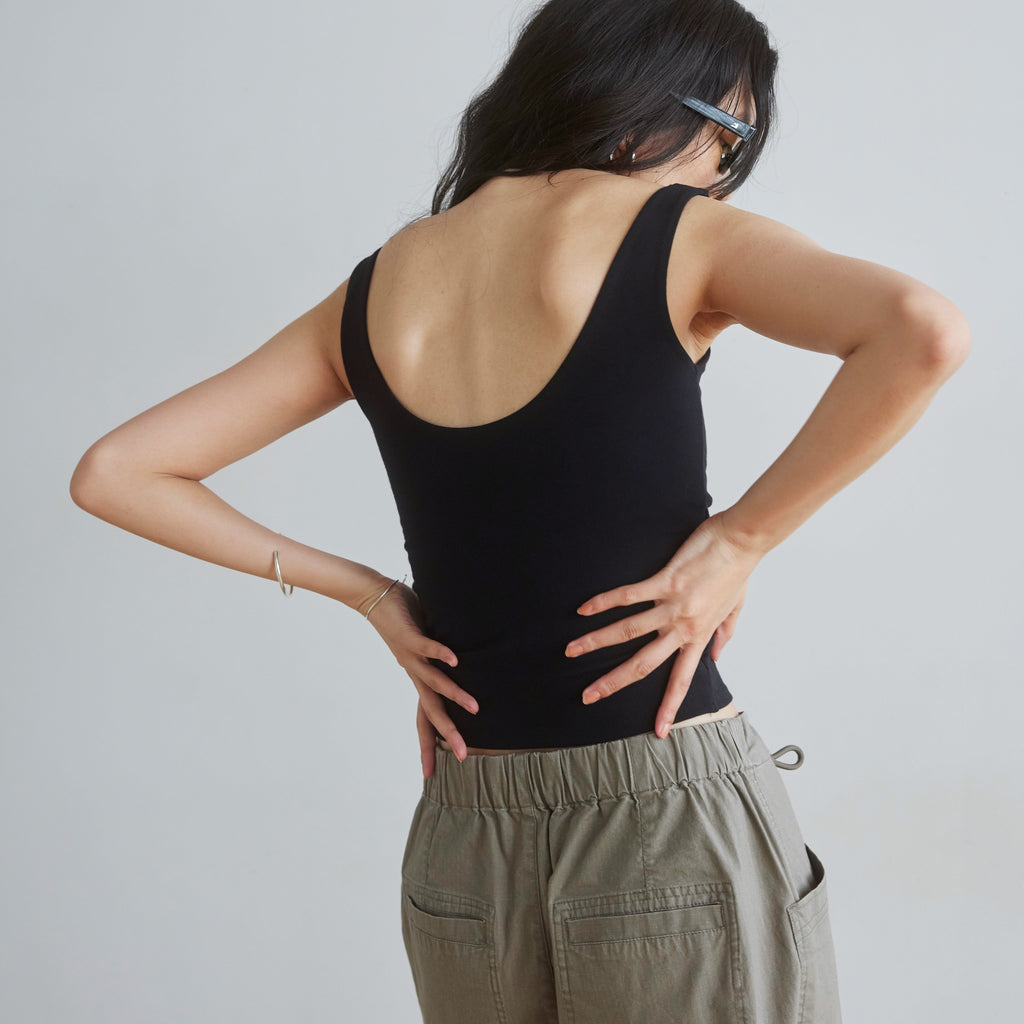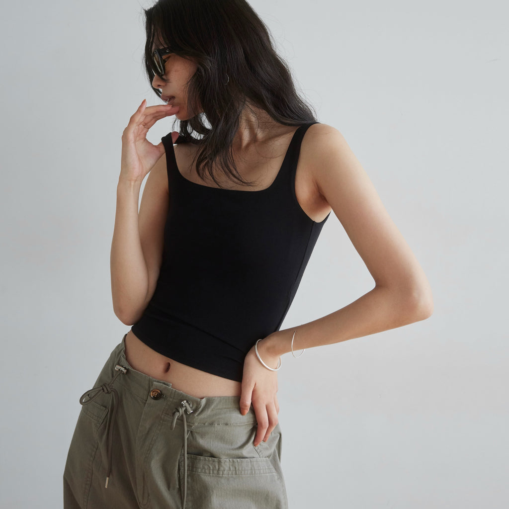This short tank has soft and flexible padding like marshmallow. It has a gentle fit and a beautiful appearance. It is a seamless and elegant piece that will be comfortable for you every day.