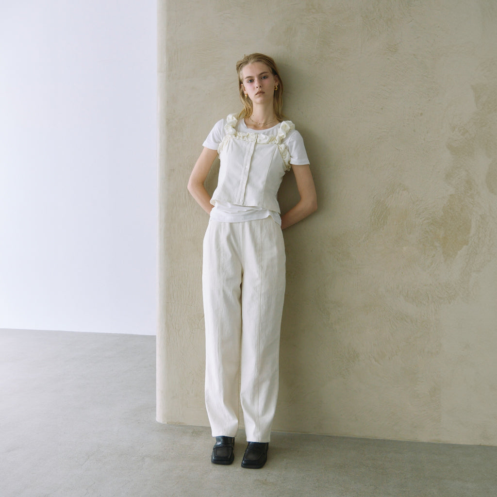 ◆ Coordination This can be paired with the Center Seam Tapered Pants, which are made from the same material. It also goes great with denim. We also recommend layering it with the Stretch Light Cotton T-shirt.