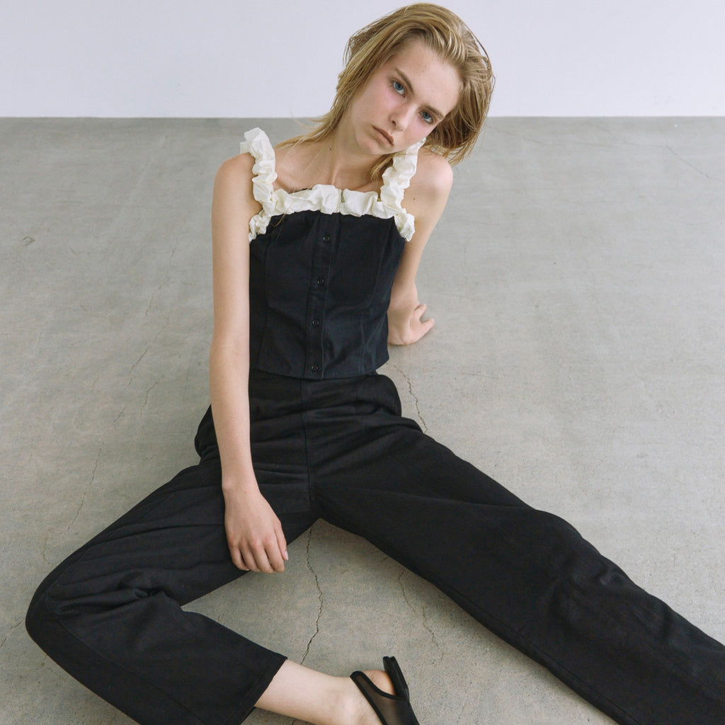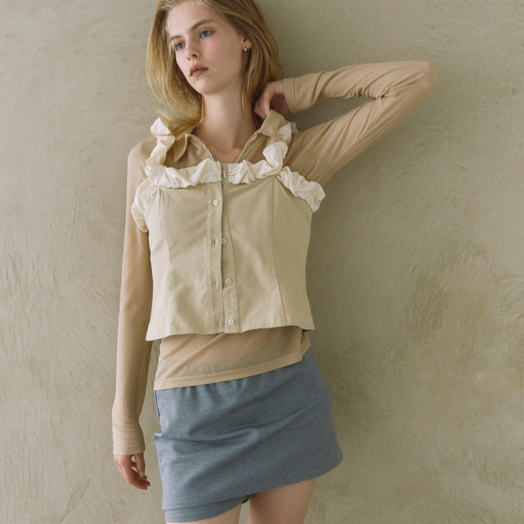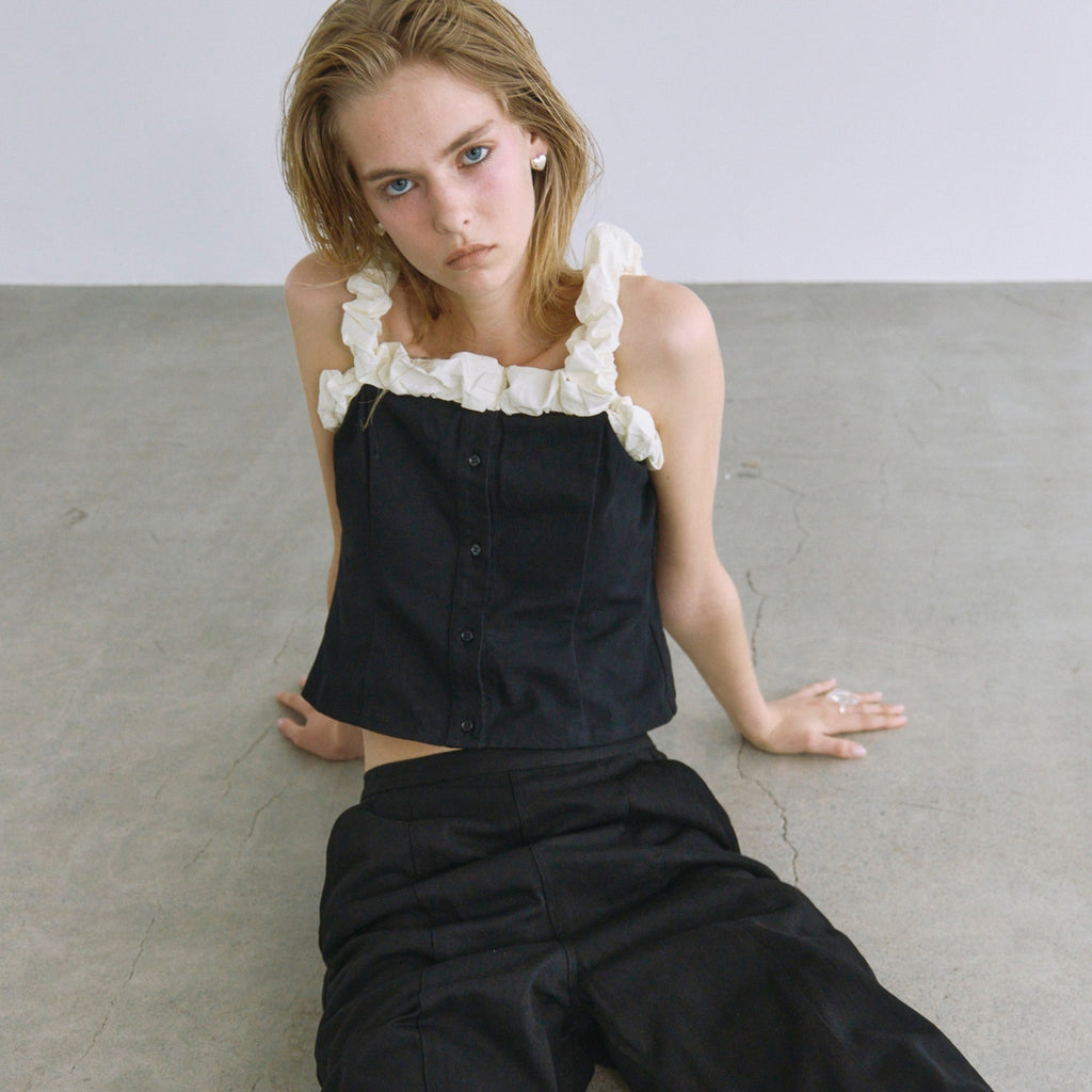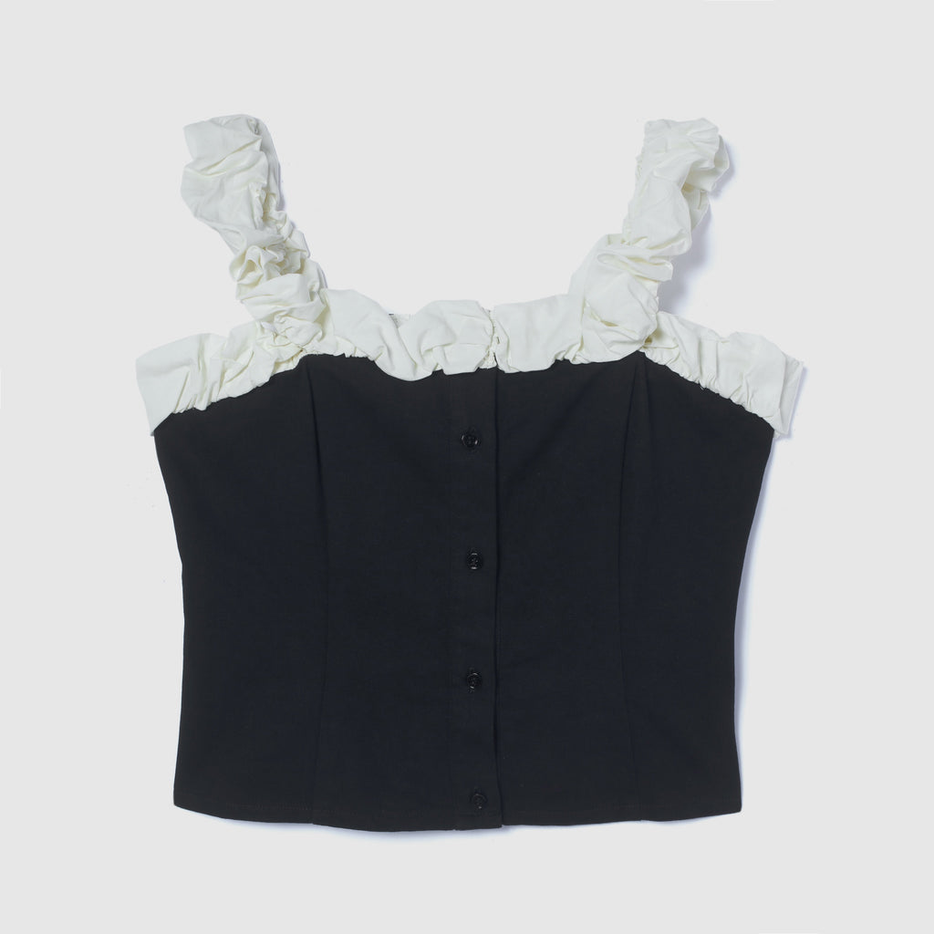 This bustier top features a natural cotton fabric with gorgeous ruffle details. It can also be worn off the shoulder, making it a 2-way piece. Layering it makes it a versatile piece that can be worn all year round.