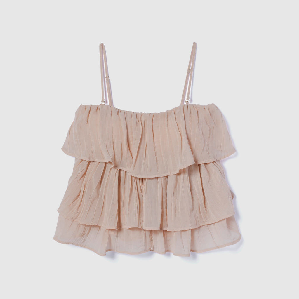 The delicate chiffon has been given an airy, flowing feel, creating a perfect balance between a relaxed feel and a gorgeous look. It can also be worn as a 2-way cami or a bare top, making it a great choice for a variety of outfits.