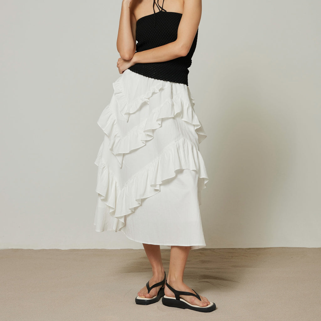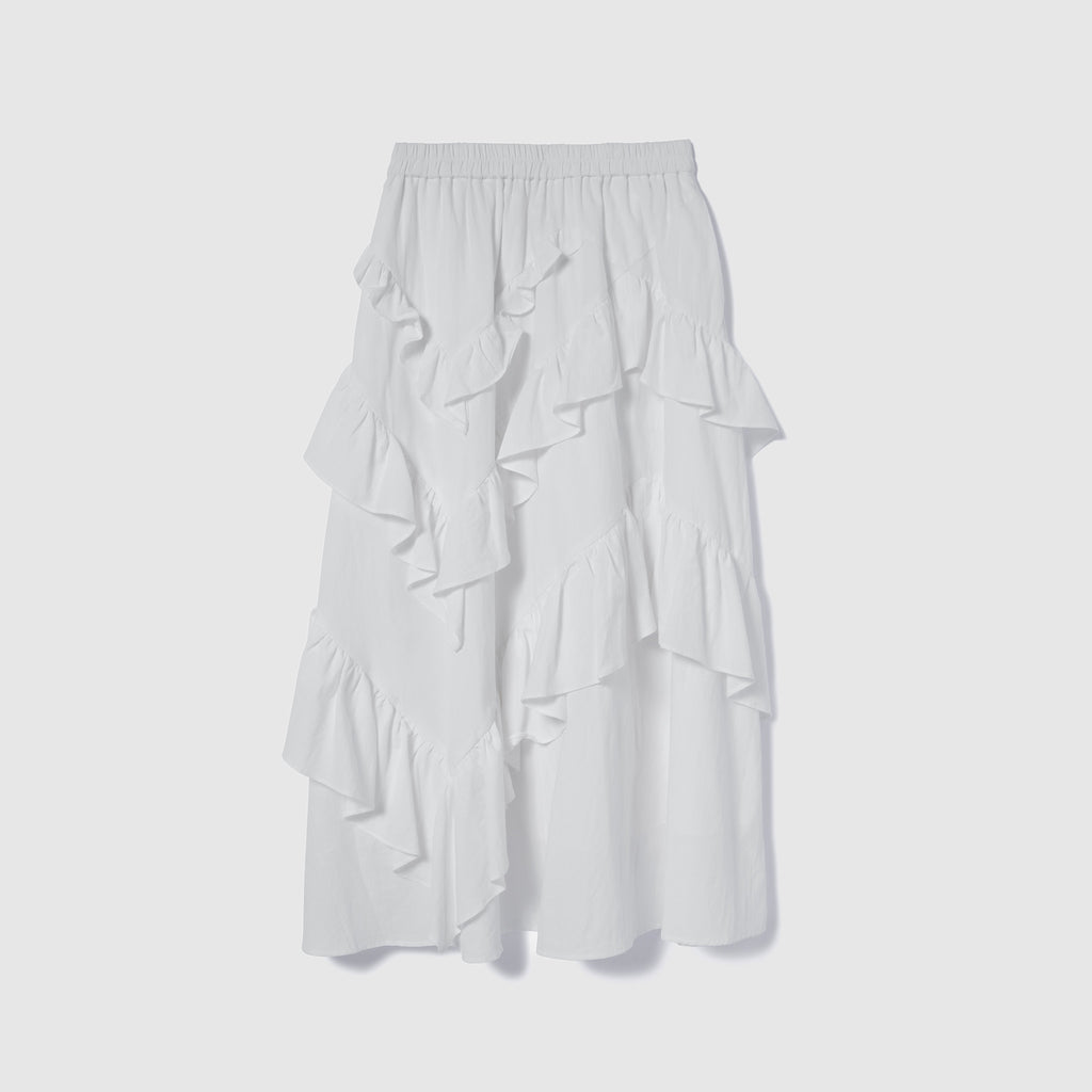 Cotton Wash Asymmetrical Ruffle Skirt