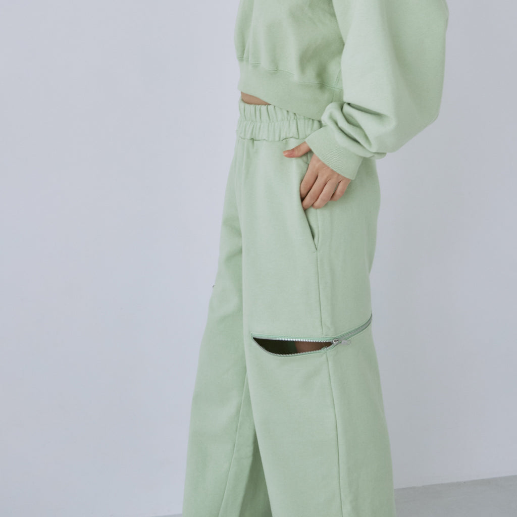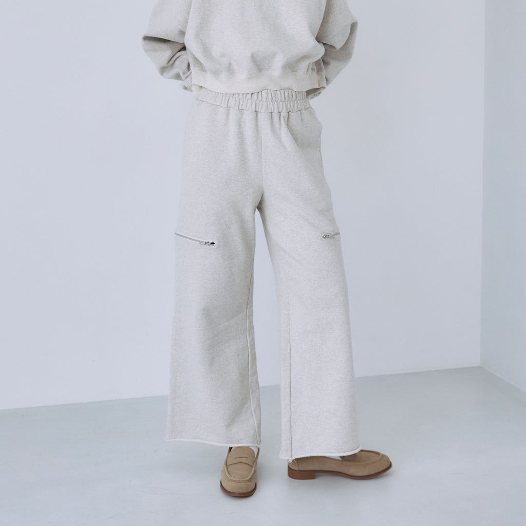 This is the same style as the previously released and highly popular High Waist Zip Cut Sweatpants, with a straight silhouette that falls straight down from the thighs.