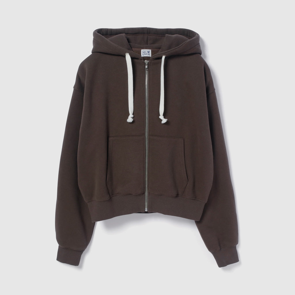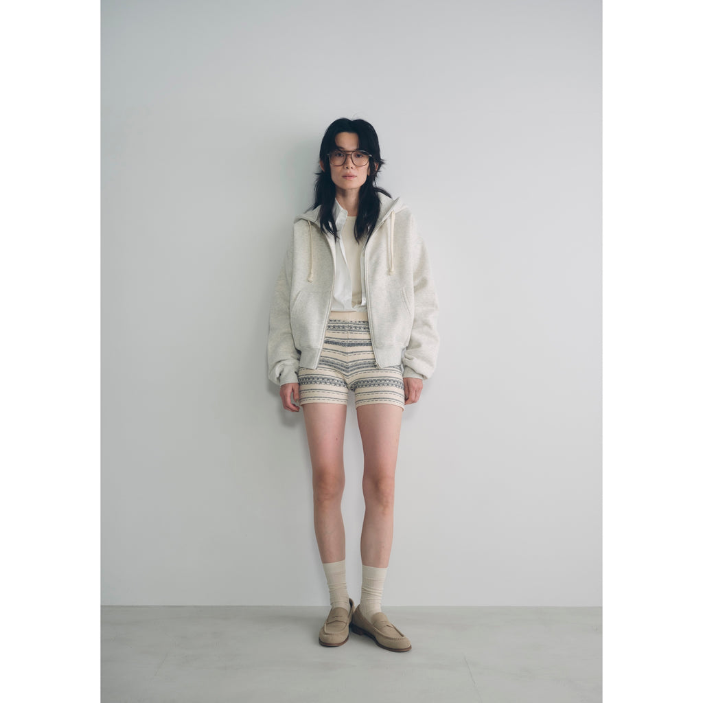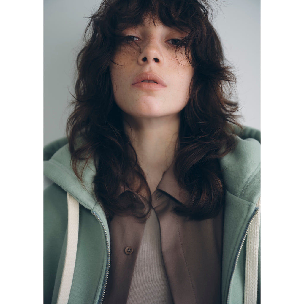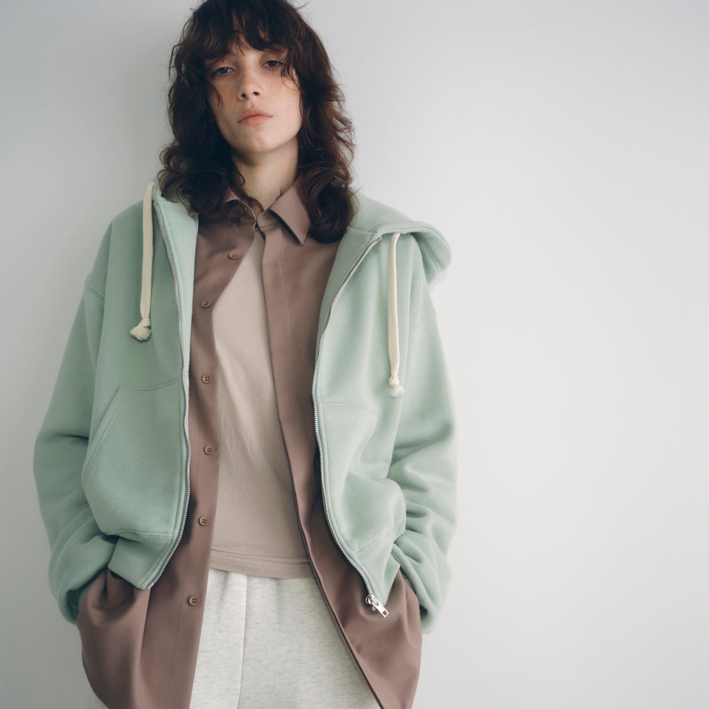 Introducing a new hoodie from our ever-popular voluminous sweatshirt series. It features a casual yet elegant zip design and a double-layered hood. Crafted from thick, warm fleece-lined fabric.