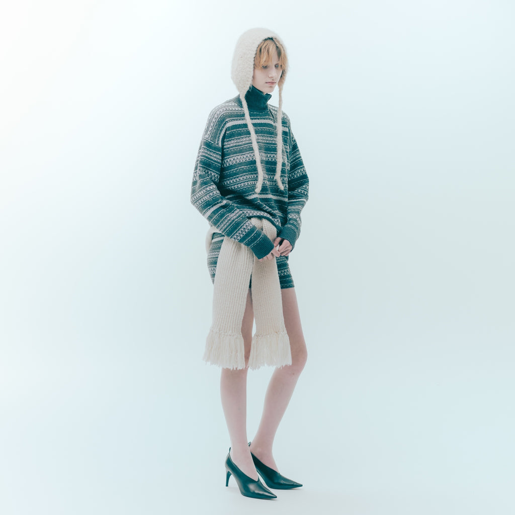 These jacquard knit shorts feature a multi-patterned border accent. The silhouette flatters your legs beautifully and they're comfortable to wear. Perfect for both at home and out.