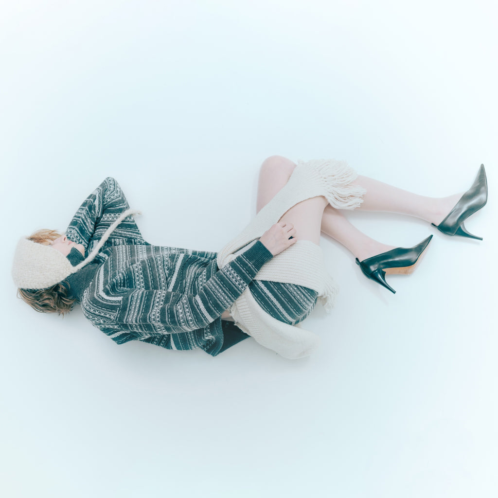 This jacquard knit material is made from a blend of resilient yarn and warm wool and acrylic. The tightly woven, uneven texture gives it a fluffy feel. Its stretchy construction allows for easy movement and a comfortable fit.
