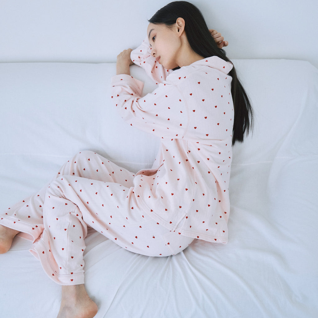 The top is just the right amount of loose, and the pants have a relaxed, straight cut and a stretchy elastic waistband, allowing for smooth movement while you sleep. It also makes it easy to turn over in your sleep. It's a perfect balance of relaxed comfort without being too loungewear-like.