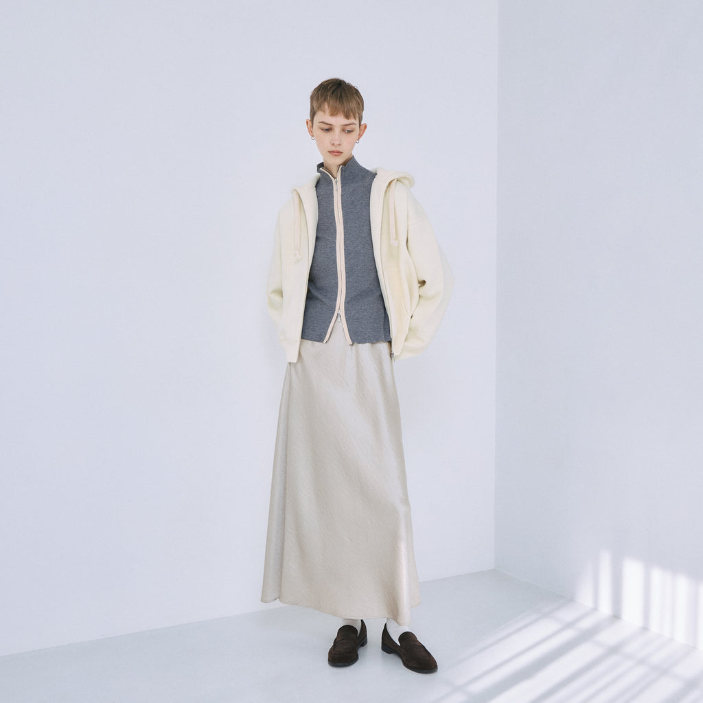 It has a double zipper that can be opened and closed from the hem, so you can enjoy layering it with an inner layer.